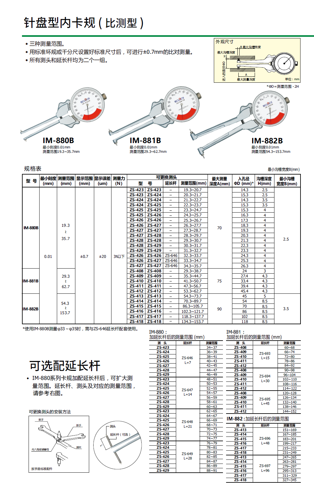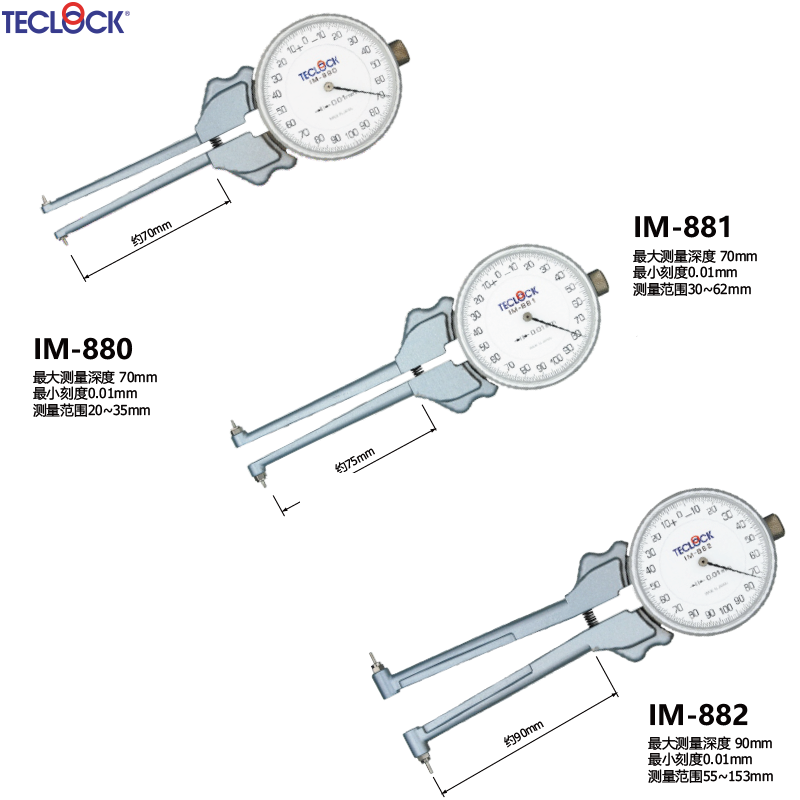 teclock得乐带表内卡规IM-880内孔测量卡规IM-882内径规IM-880B比测型带表内卡规