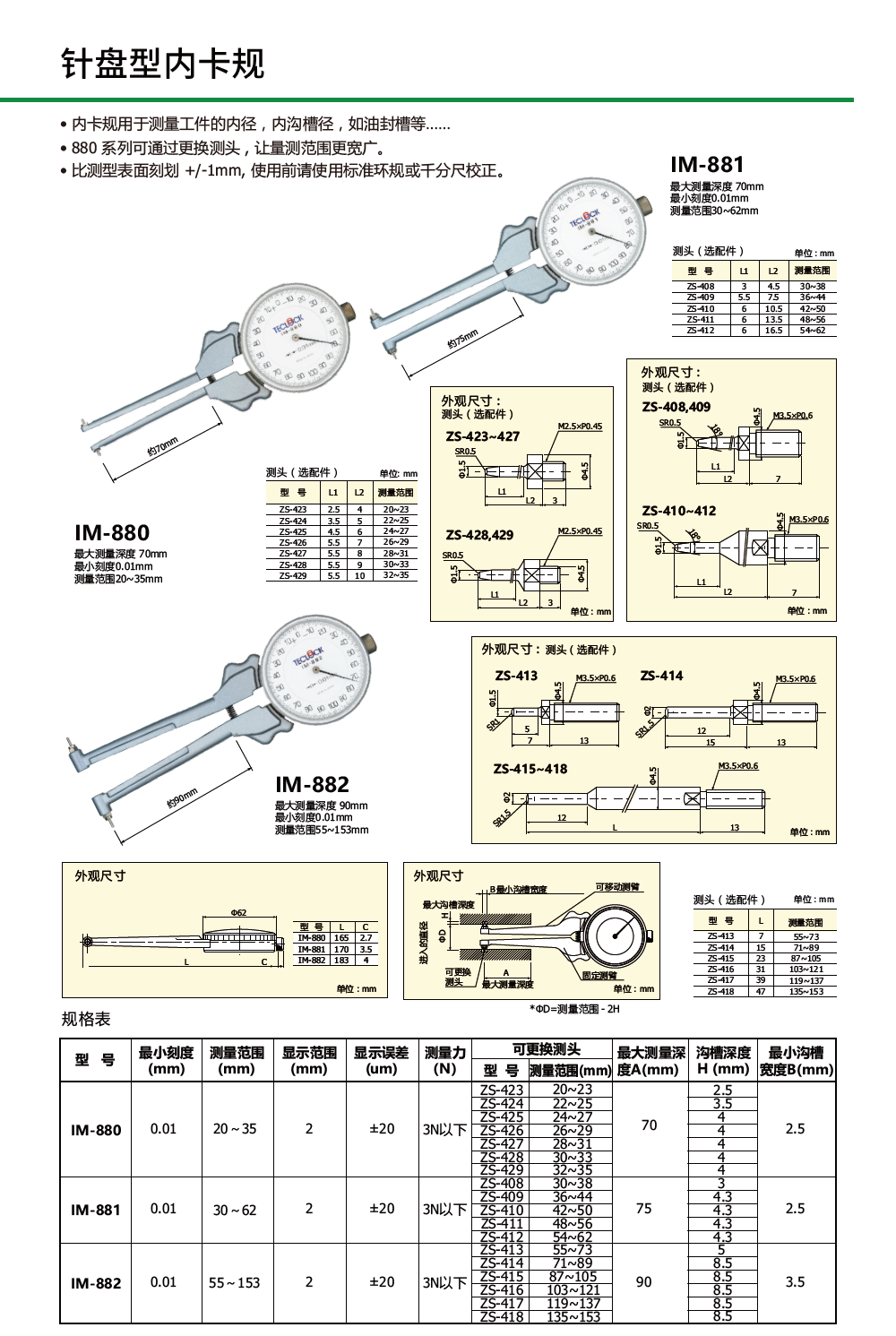 • 880 系列可通过更换测头 , 让量测范围更宽广。