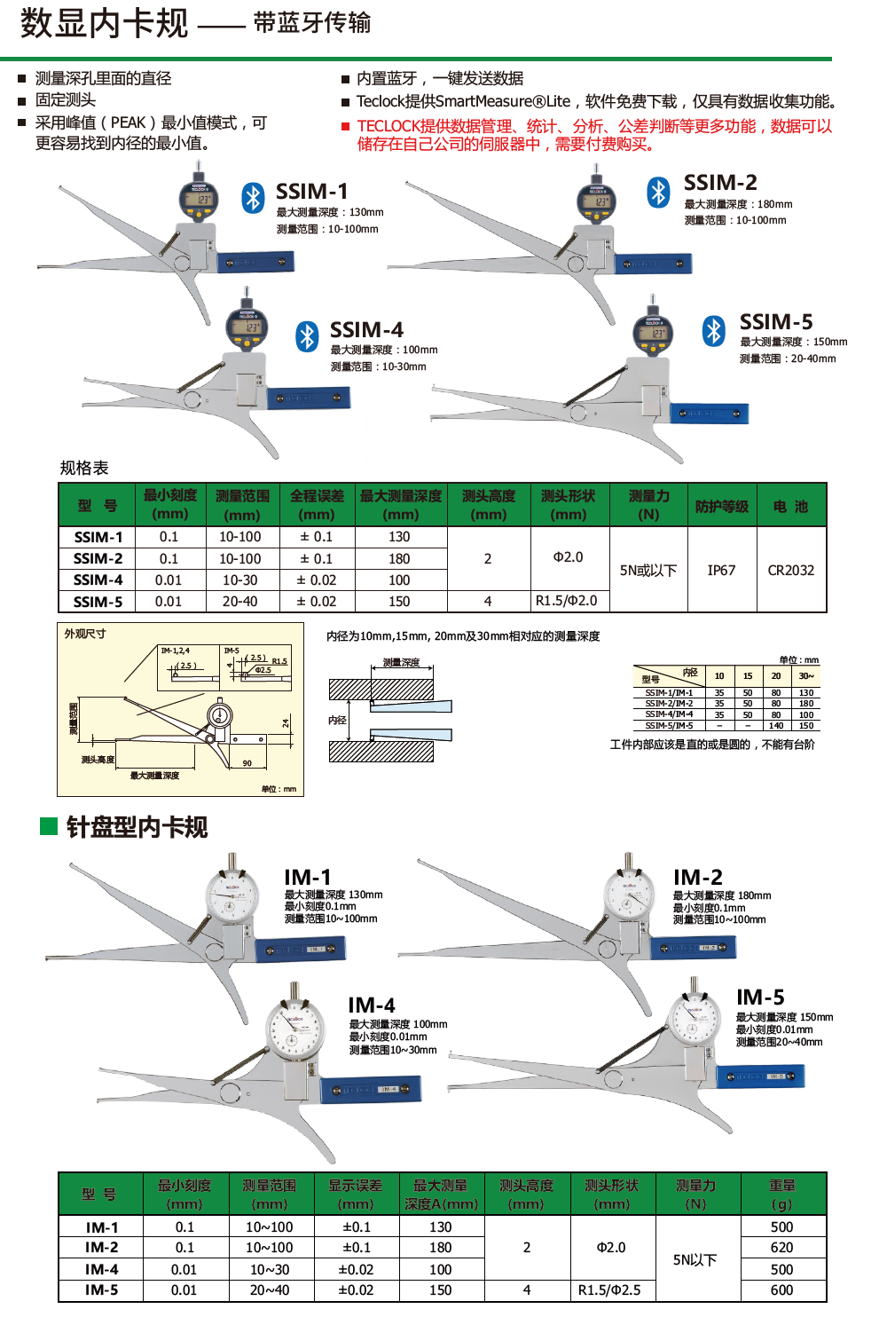 日本得乐teclock无线蓝牙内卡规SSIM-1带表内卡规IM-1 2 4 5异形内孔槽尺寸测量