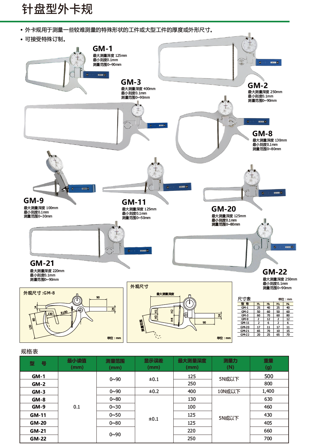 teclock得乐GM-1外卡规GM-8带表外卡规GM-11壁厚卡规GM-22异形外尺寸卡规