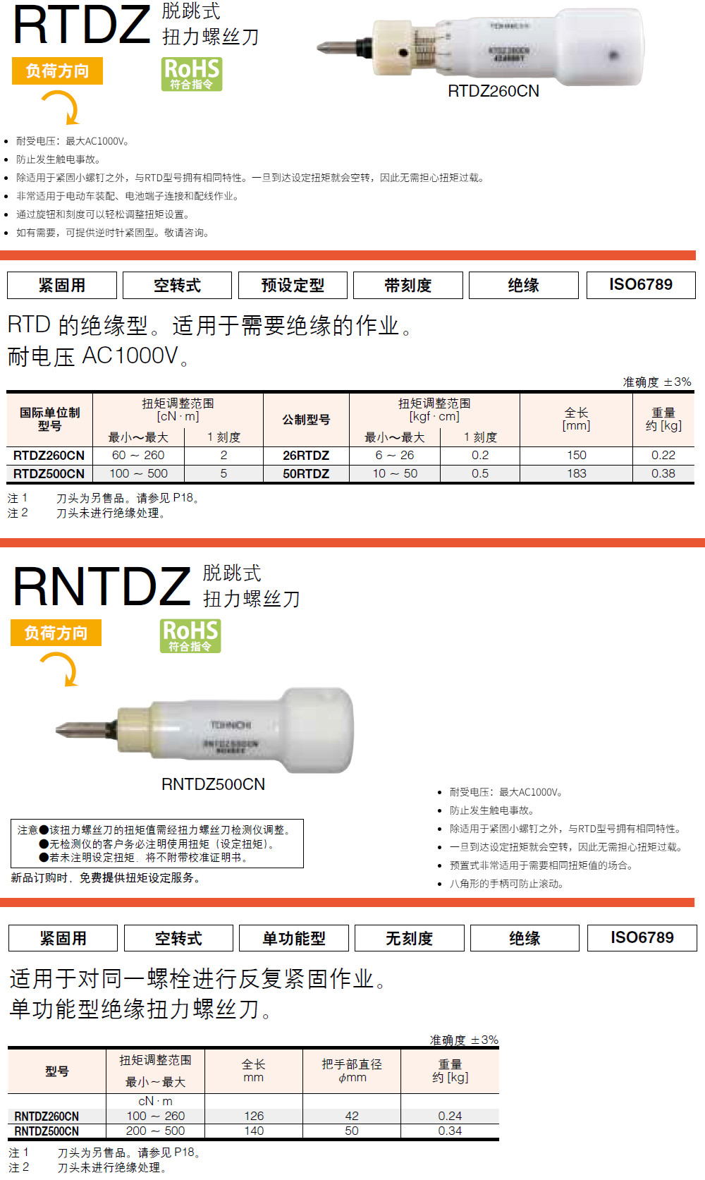 Tohnichi东日绝缘型RTDZ260CN扭力螺丝刀不导电扭力起子RTDZ500CN电池装配扭力批电工扭力螺丝刀