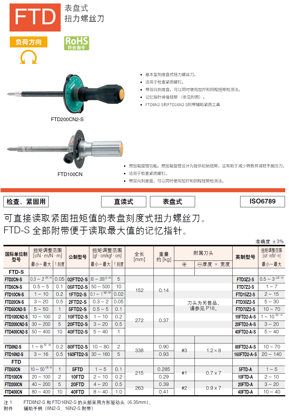 Tohnichi东日FTD5CN-S表盘式扭力螺丝刀FTD50CN2-S指针式扭力起子10FTD2-S扭力批FTD100CN扭矩螺丝刀