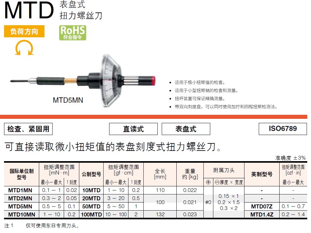 东日Tohnichi微小扭矩螺丝刀MTD5MN精密电子扭力检查起子5-50gf·cm扭矩小扭力测量MTD10MN表盘指针式
