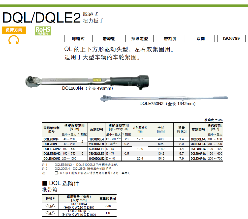 ● DQLE1000N2或者DQLE750N2适合于紧固大型车的车轮螺母。