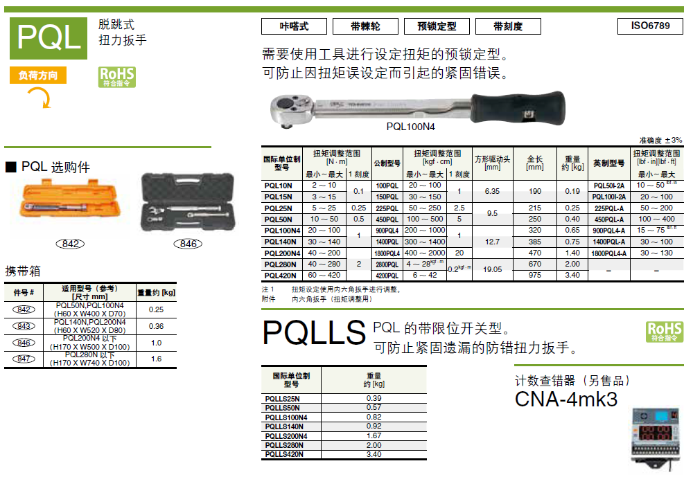 Tohnichi东日预锁式扭力扳手PQL15N扭力可调型1-420N·m扭矩范围预置式扭矩扳子公斤扳手
