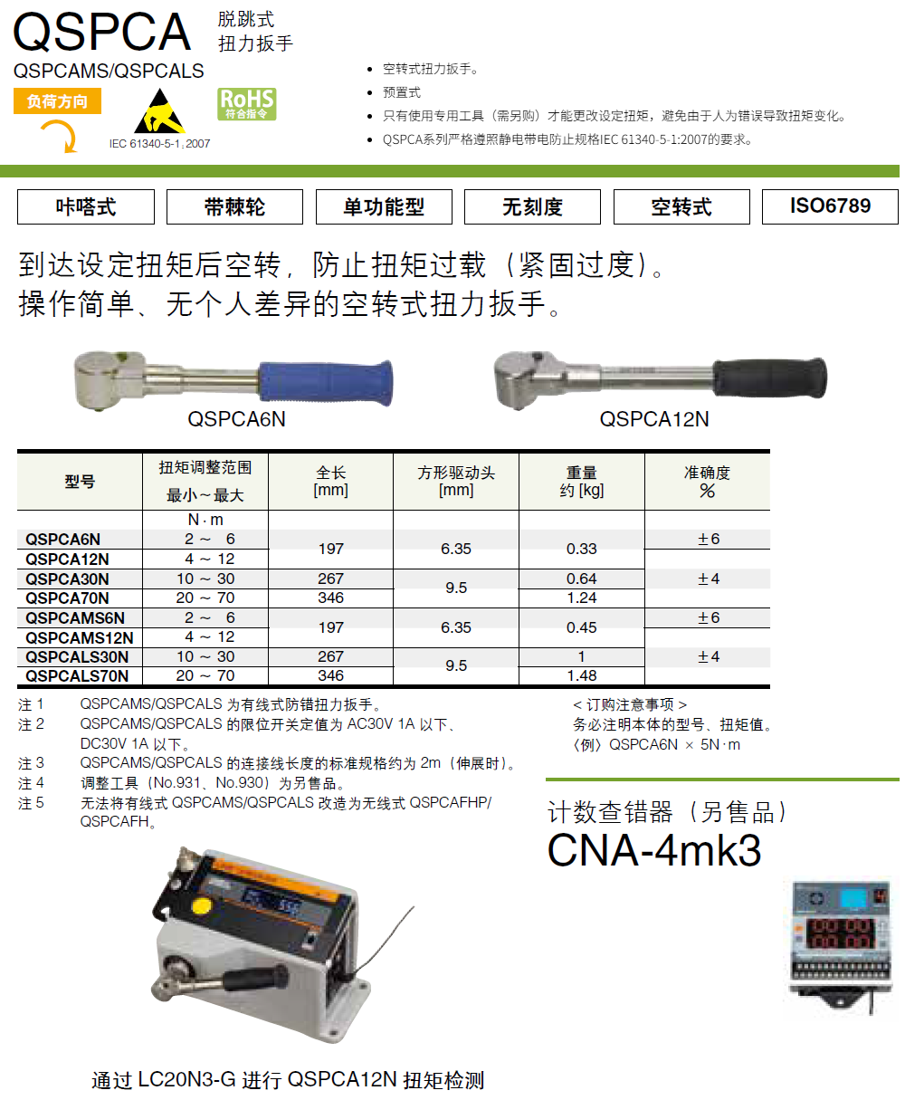 日本Tohnichi东日QSPCA6N空转式扭力扳手QSPCA30N打滑式扭矩扳手防止扭力过大打滑式扭力工具