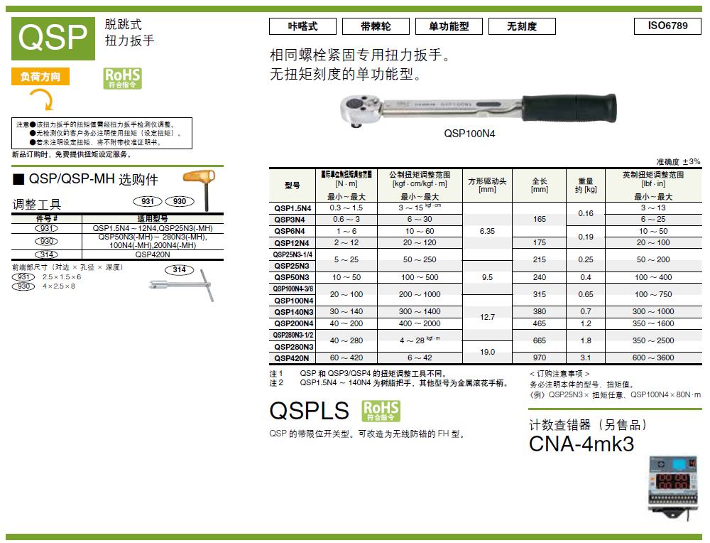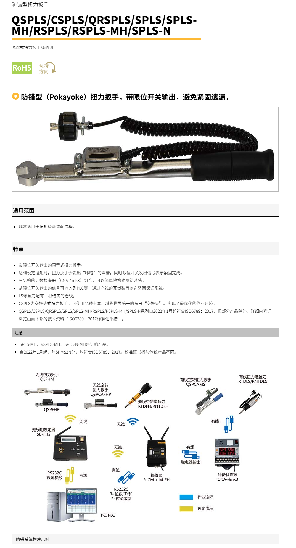 日本东日Tohnichi预置式防错扭力扳手QSPLS CSPLS防止紧固错漏扭矩扳手QRSPLS SPLS SPLS-MH扭力防错
