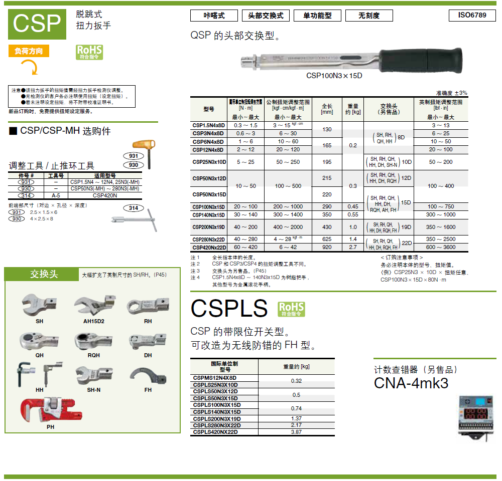 ● CSPLS为交换头式扭力扳手。可使用品种丰富、东日“交换头”。实现了最优化的作业环境。
