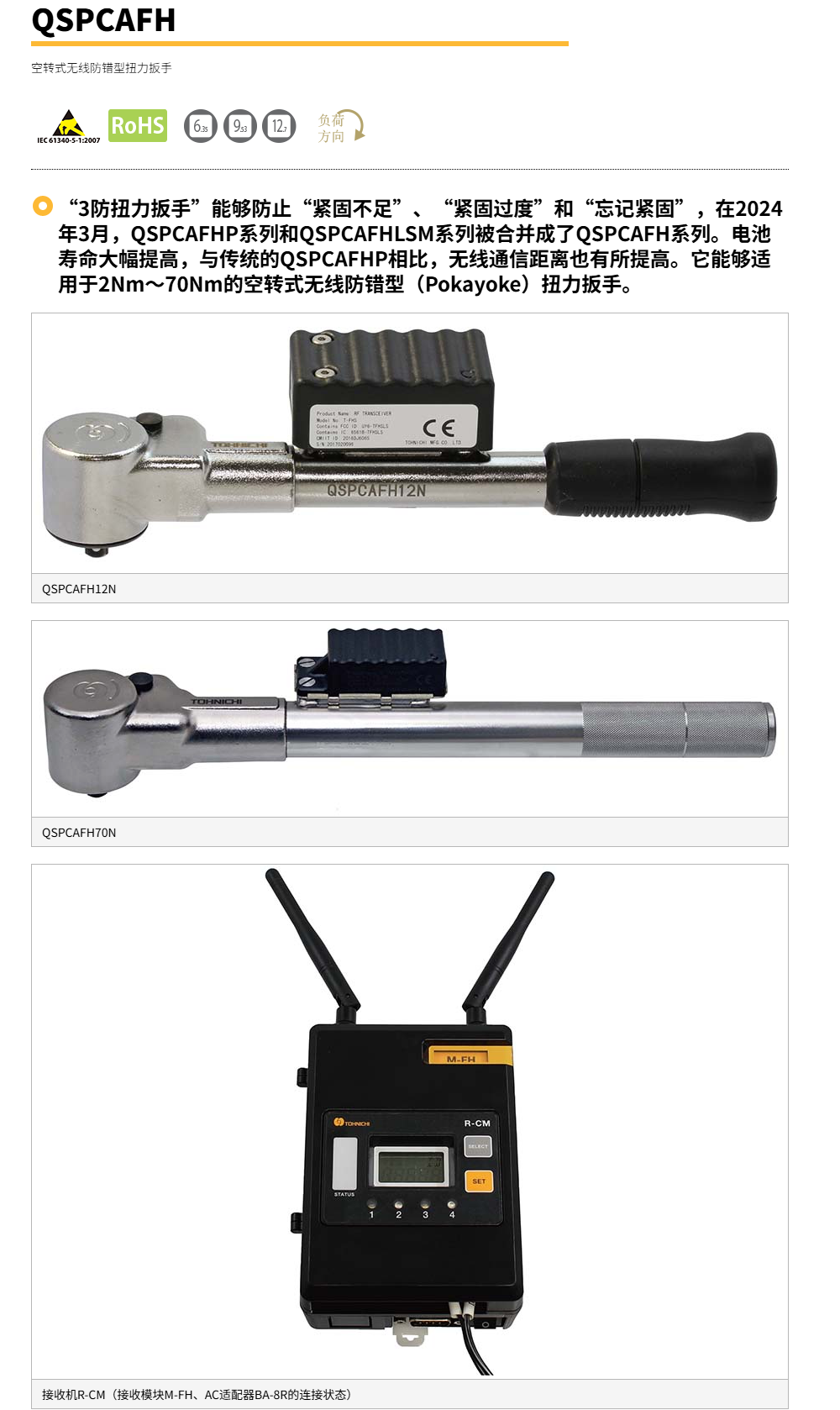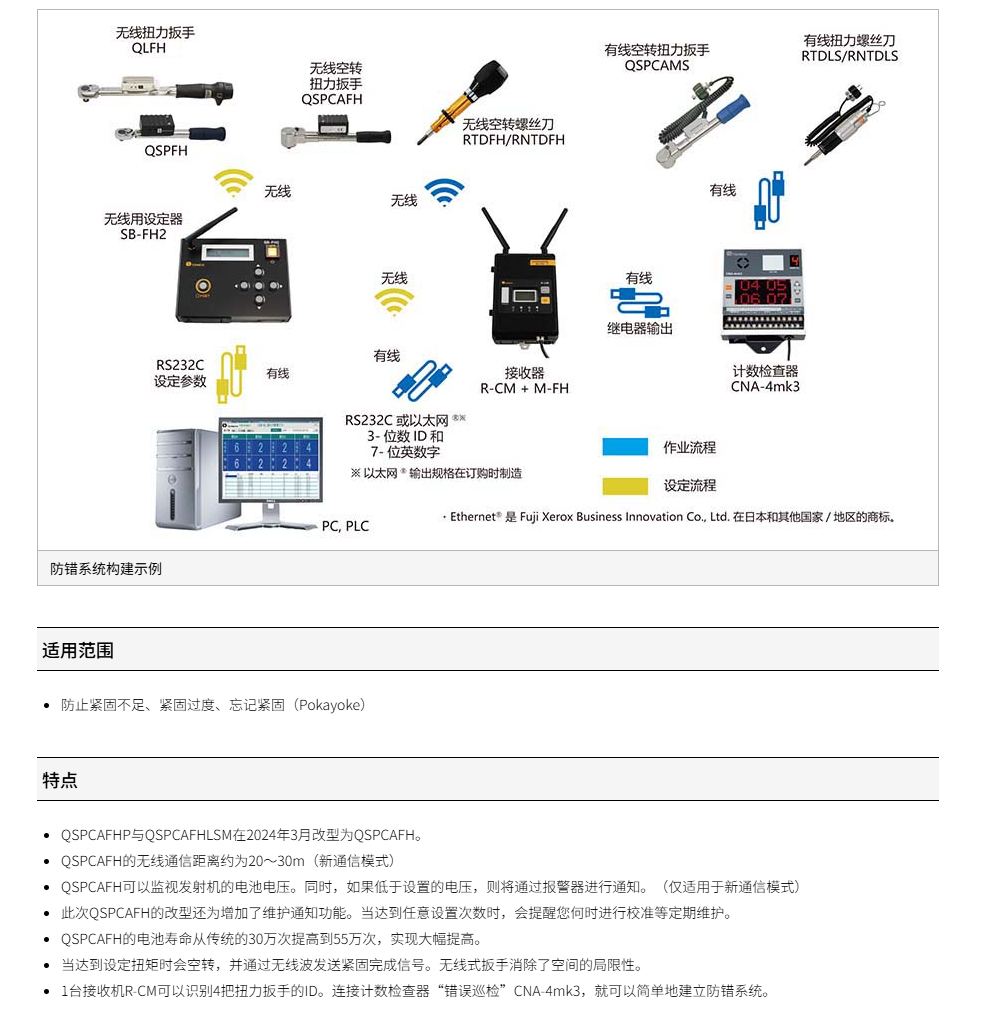 日本Tohnichi东日QSPCAMS空转式扭力扳手防错型QSPCAFH无线通讯防错扭矩扳手防错防漏防过载