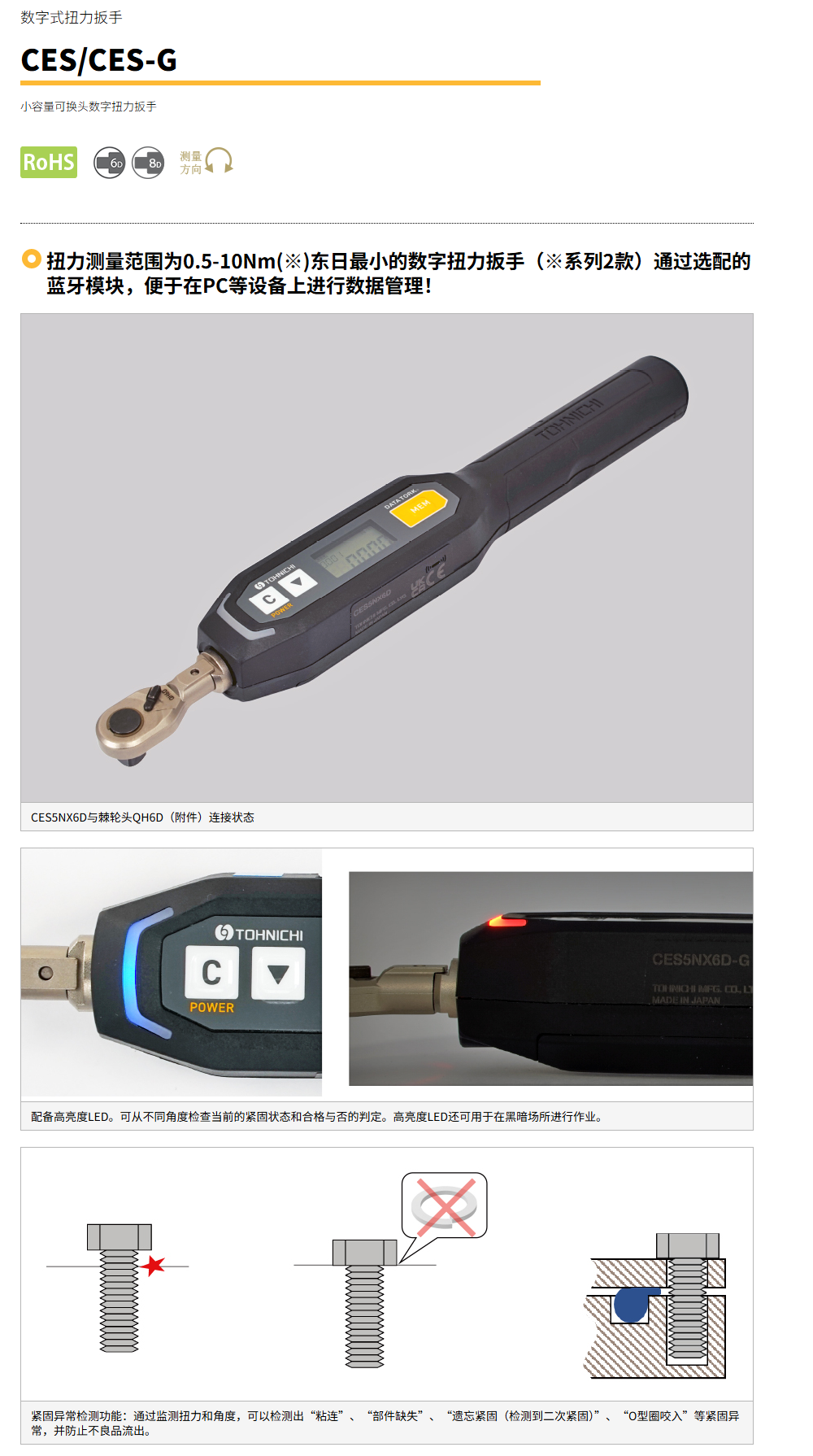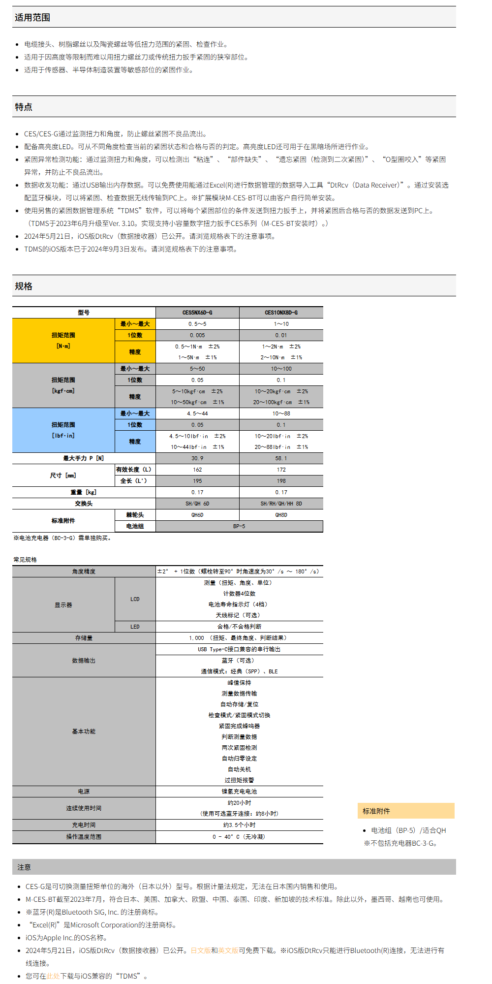 Tohnichi日本东日CES5NX6D-G小量程0.5-5N.m数显扭力扳手CES10NX8D-G无线蓝牙数字扭矩扳手