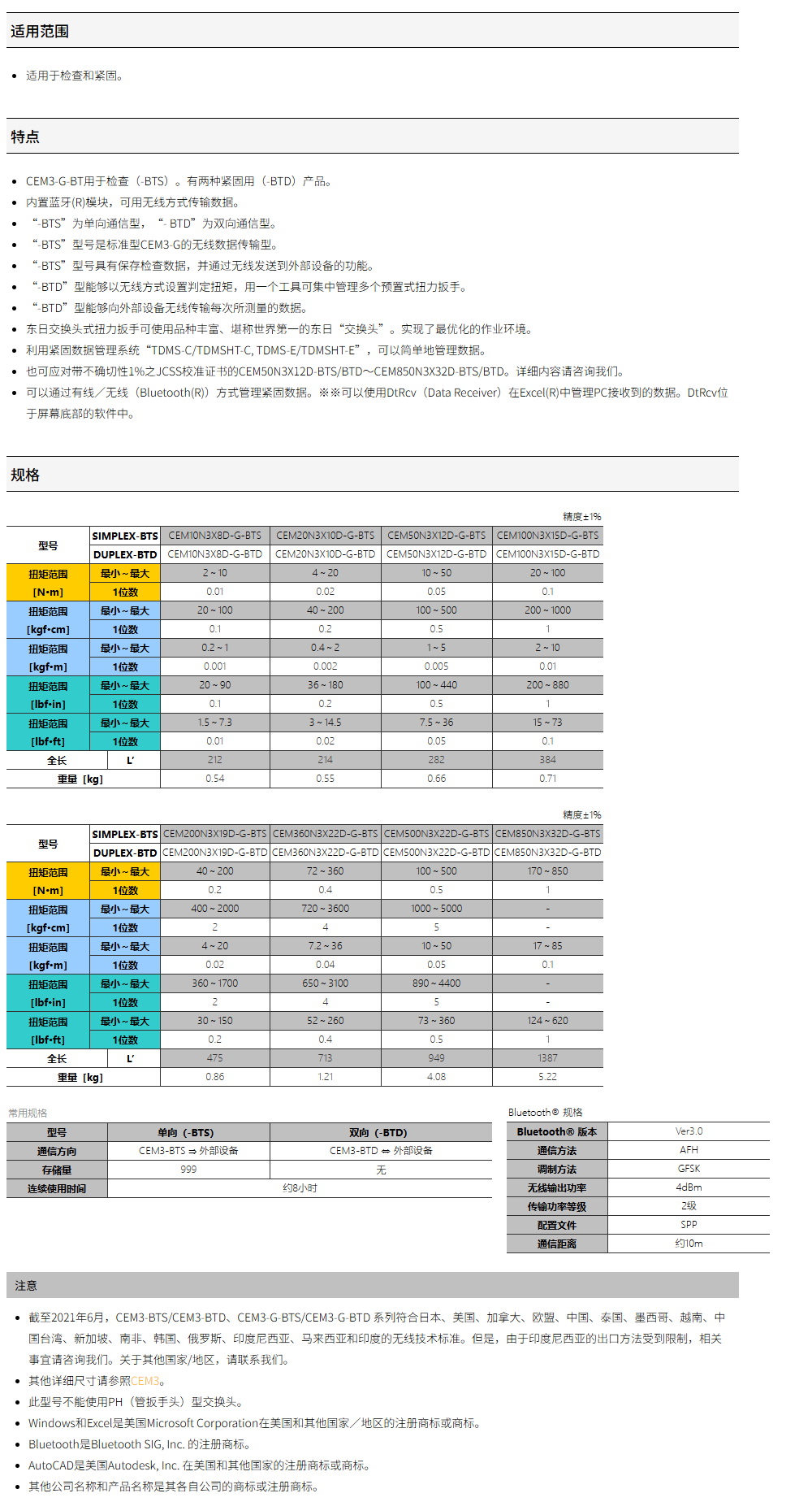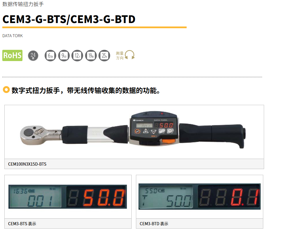 日本Tohnichi东日CEM10N3X8D-G-BTS无线蓝牙数显扭力扳手CEM20N3X10D-G-BTD无线蓝牙Bluetooth双向通信扭矩扳手