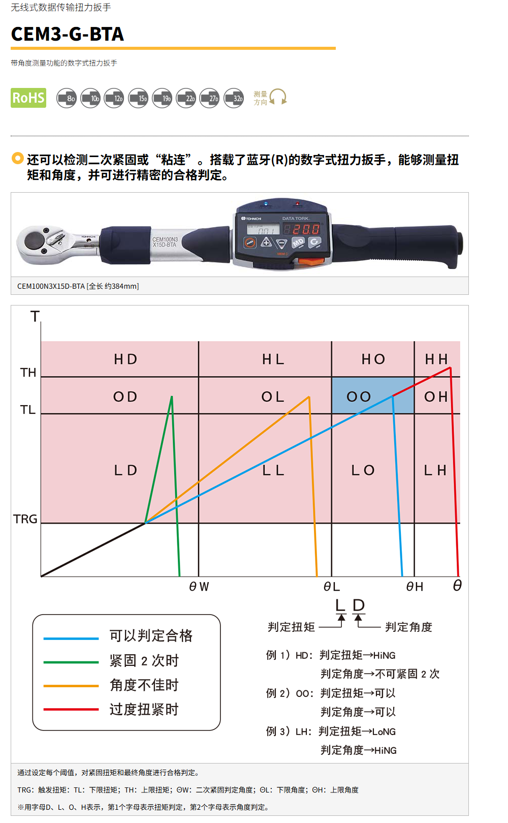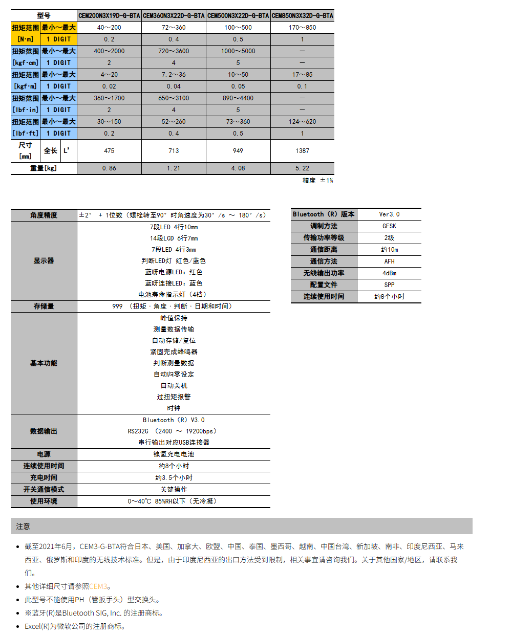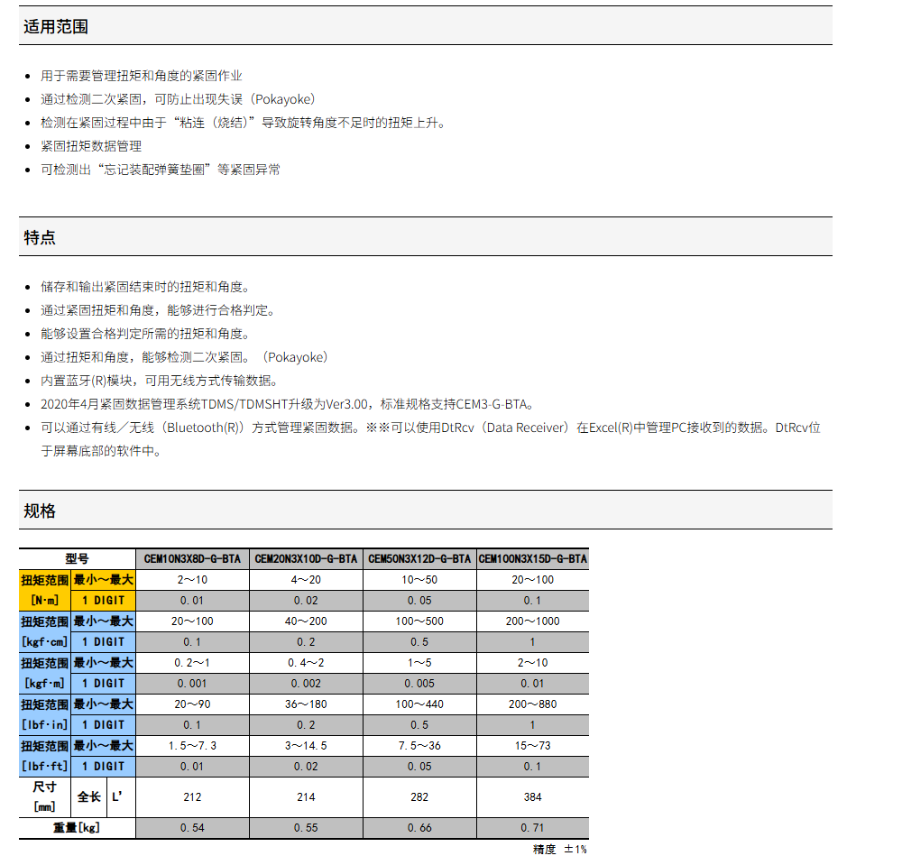 东日Tohnichi带角度测量功能无线蓝牙数字式扭力扳手CEM20N3X10D-G-BTA串口COM通信扭力扳手PLC连接扭矩扳手