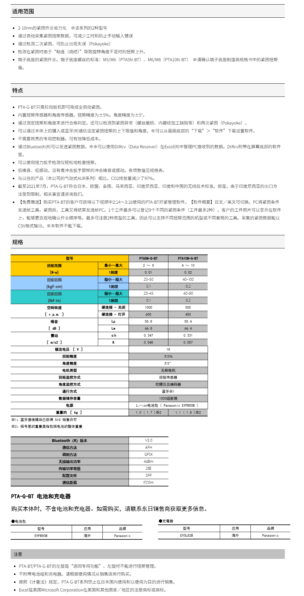 ● 【免费赠送】购买PTA-BT的客户可获得PTA-BT拧紧管理软件。