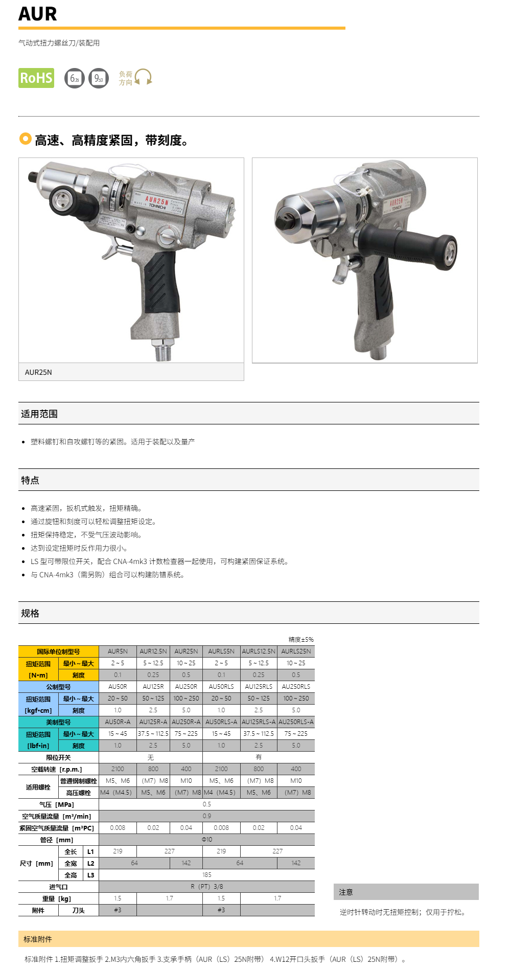 日本东日AUR5N高速紧固气动扭力螺丝刀AUR25N高精气动扭矩风批AURLS25N精密紧固气动扭矩工具