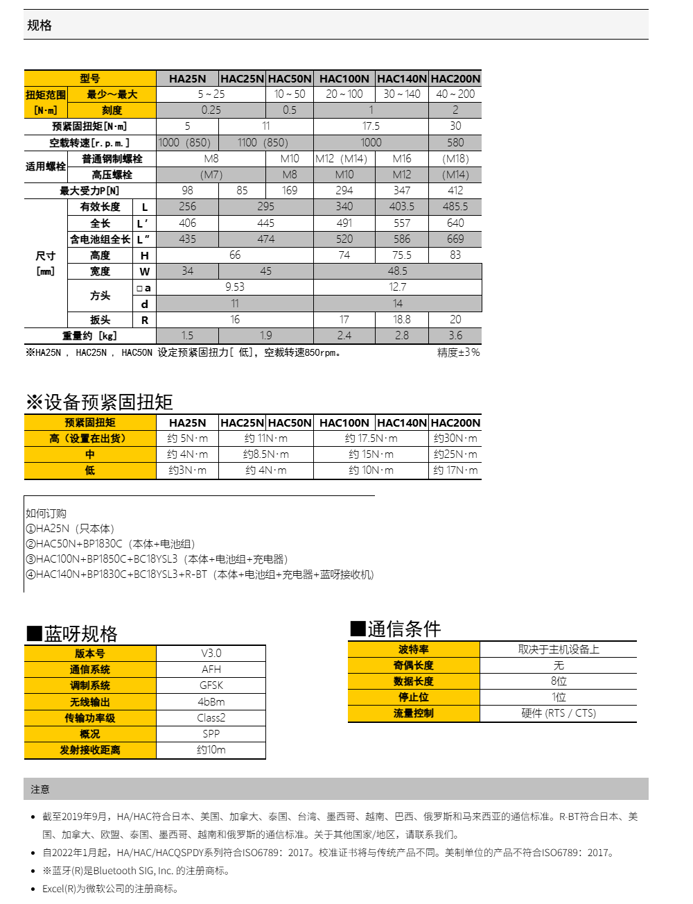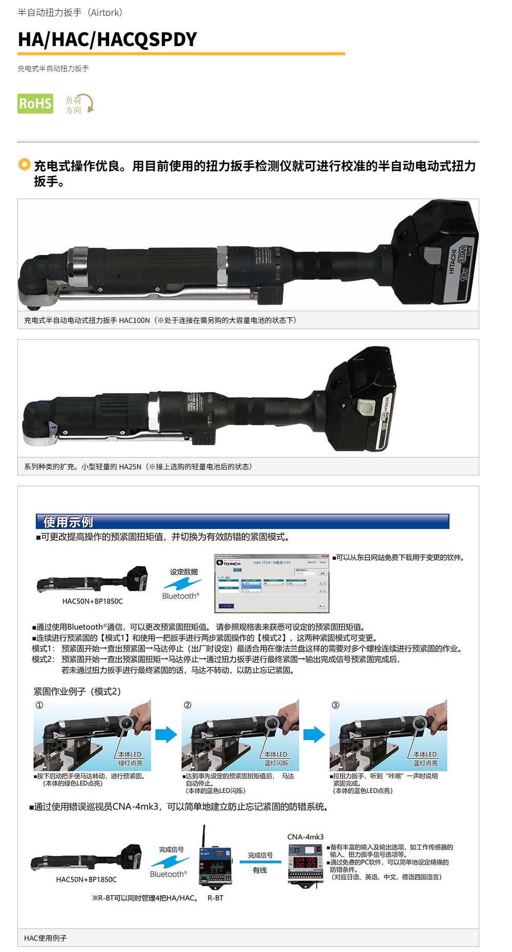日本Tohnichi东日HAC25N充电式半自动扭力扳手HAC140N高精度多功能电动扭矩扳手紧固管理工具