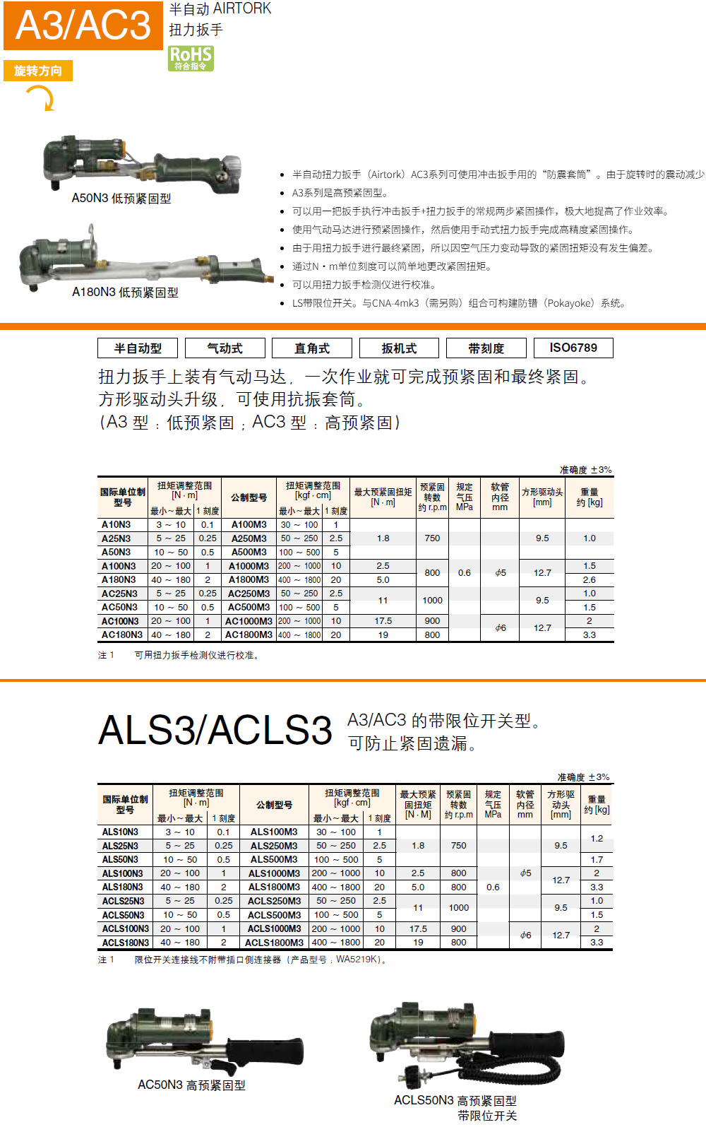 Tohnichi日本东日AC25N3气动马达扭力扳手AC100N3气动式动力扭矩扳手ACLS180N3高精度气动扳手
