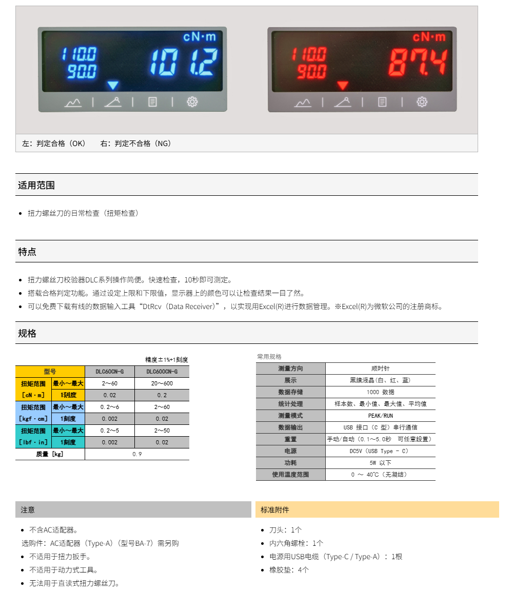 ● 扭力螺丝刀校验器DLC系列操作简便。快速检查,10秒即可测定。
