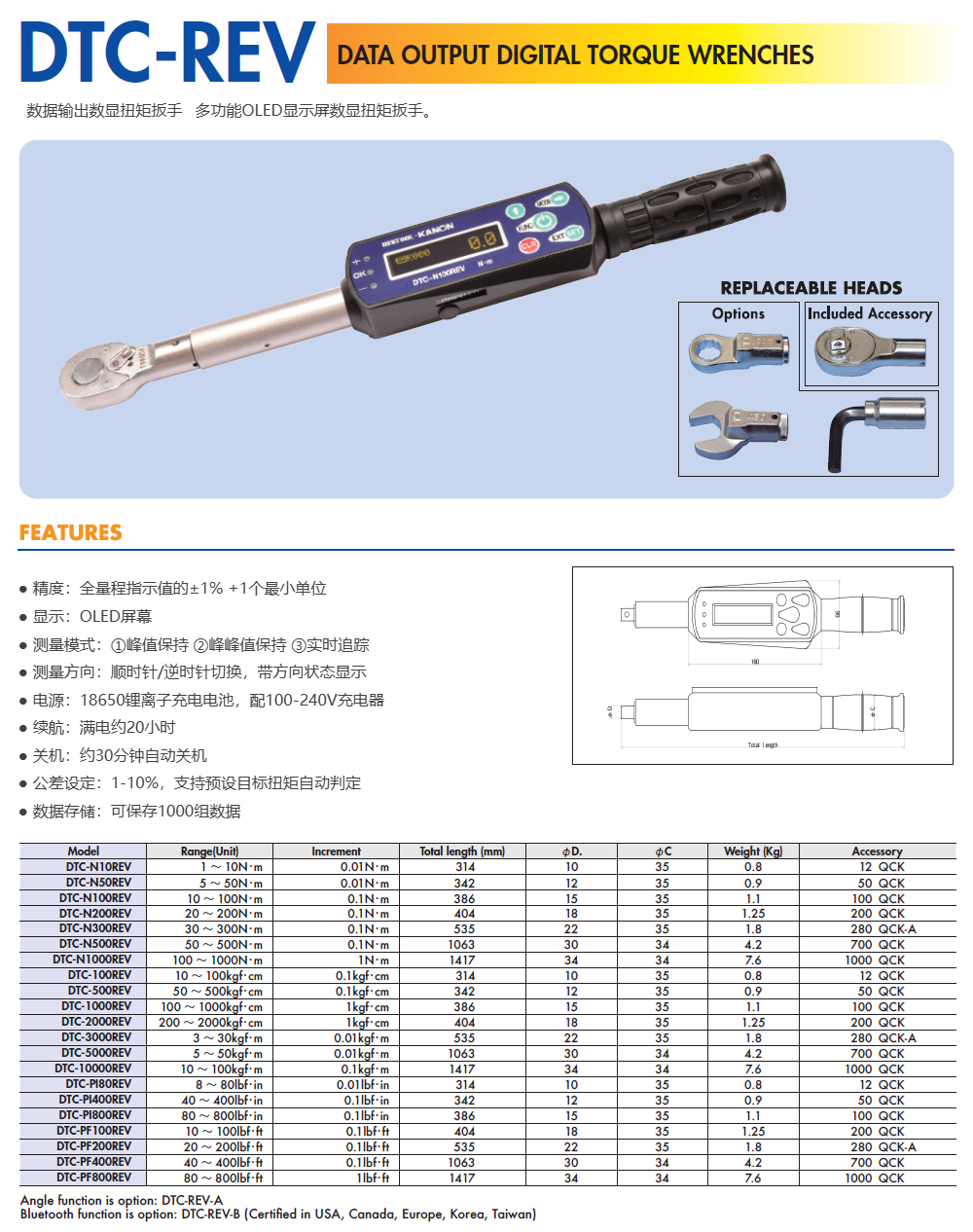 日本kanon中村数显扭矩扳手DTC-N10REV数字式扭矩扳手DTC-N100REV高精度扭矩扳手DTC-N500REV