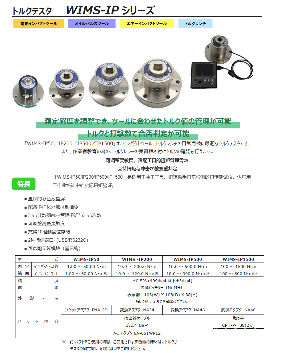 WIMS-IP50、WIMS-IP200、WIMS-IP500、WIMS-IP1500※ 覆盖50N·m至1500N·m量程,适配不同工业场景