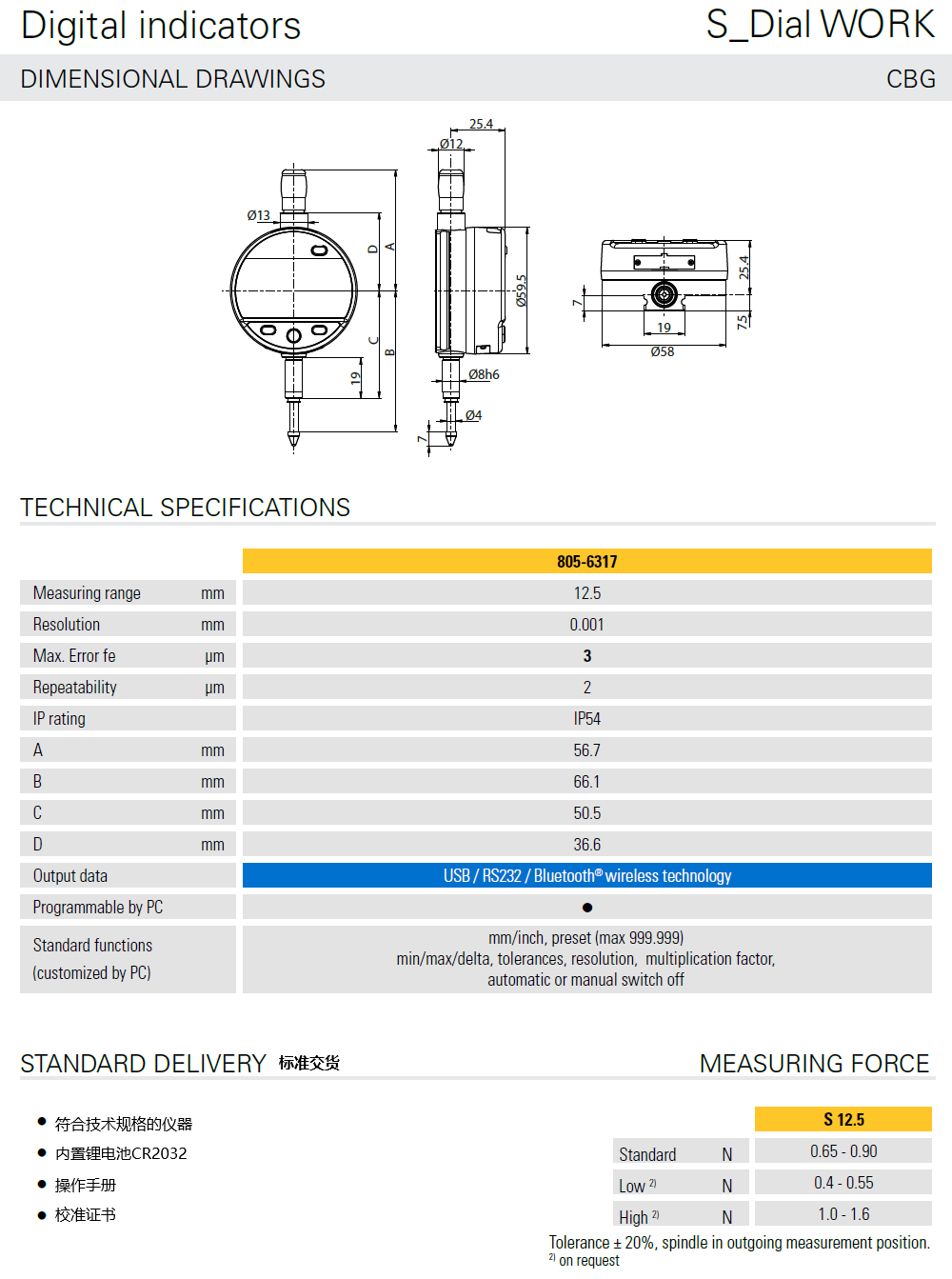 瑞士sylvac无线蓝牙Bluetooth千分表系列