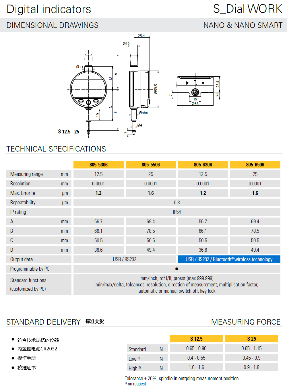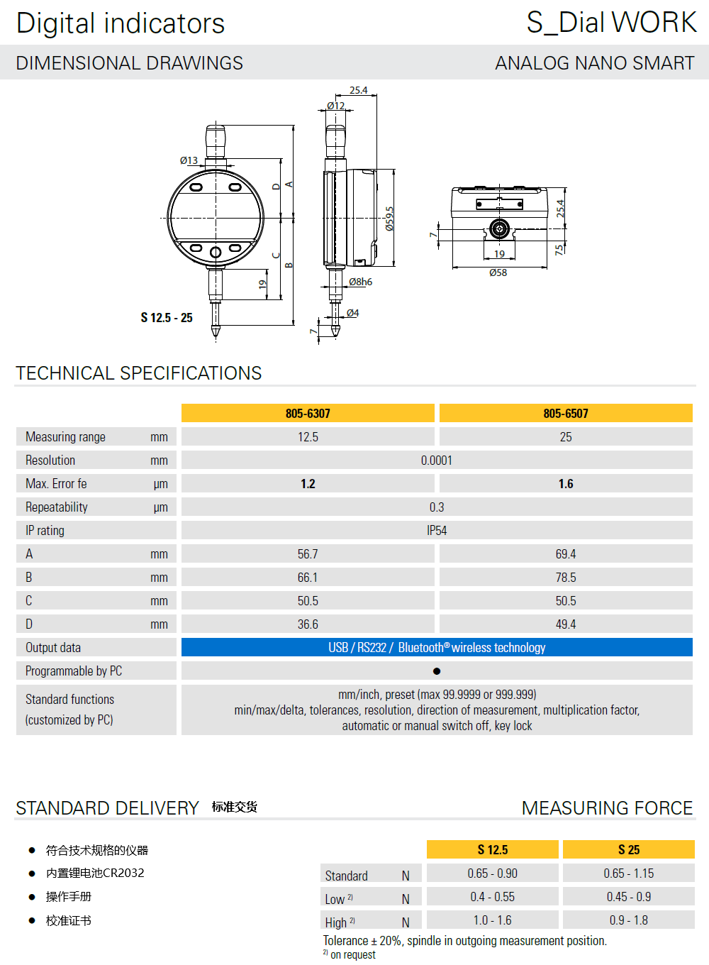 Digital indicator S_Dial WORK Nano & Nano Smart标准型