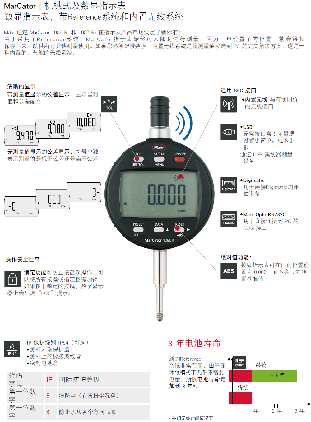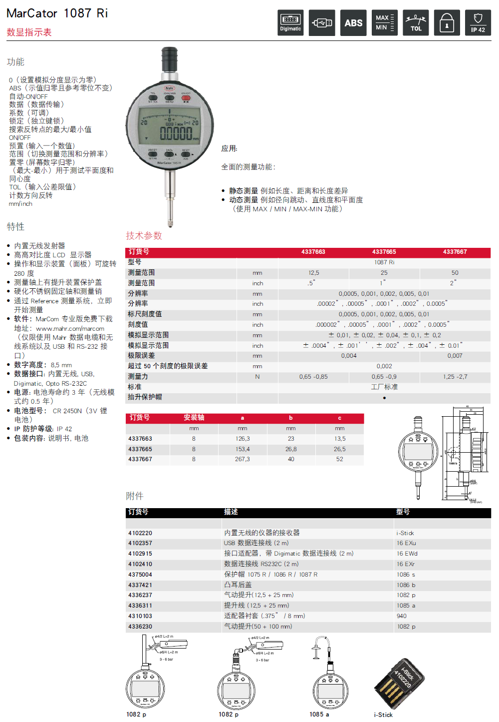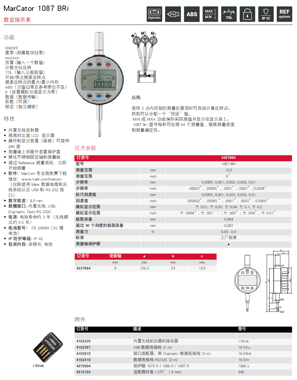 德国MAHR马尔内置无线蓝牙模拟式数显千分表MarCator 1087 Ri动态测量数显千分表无线蓝牙内径千分表MarCator 1087 BRi