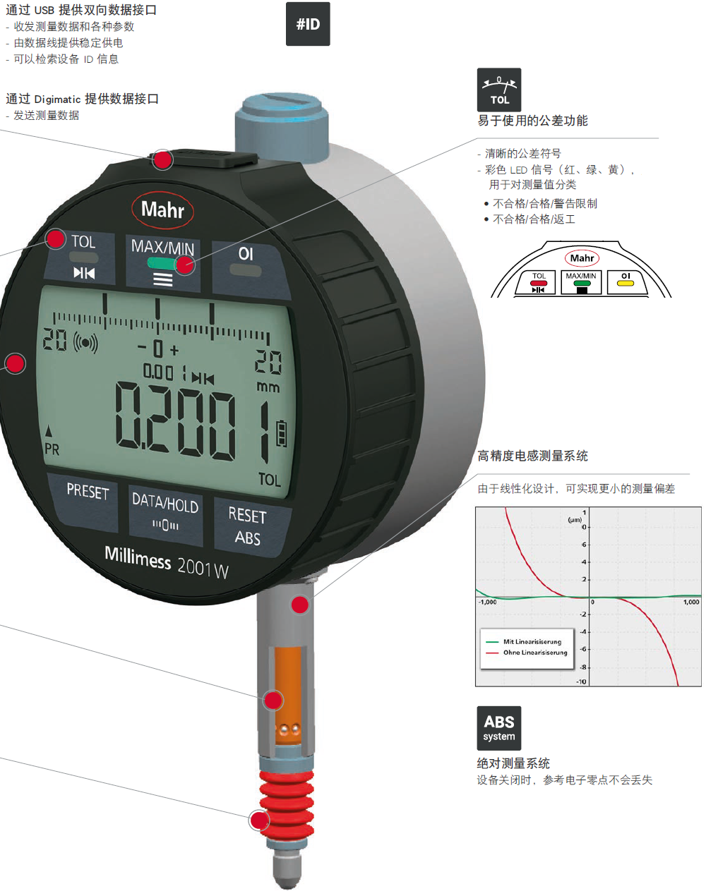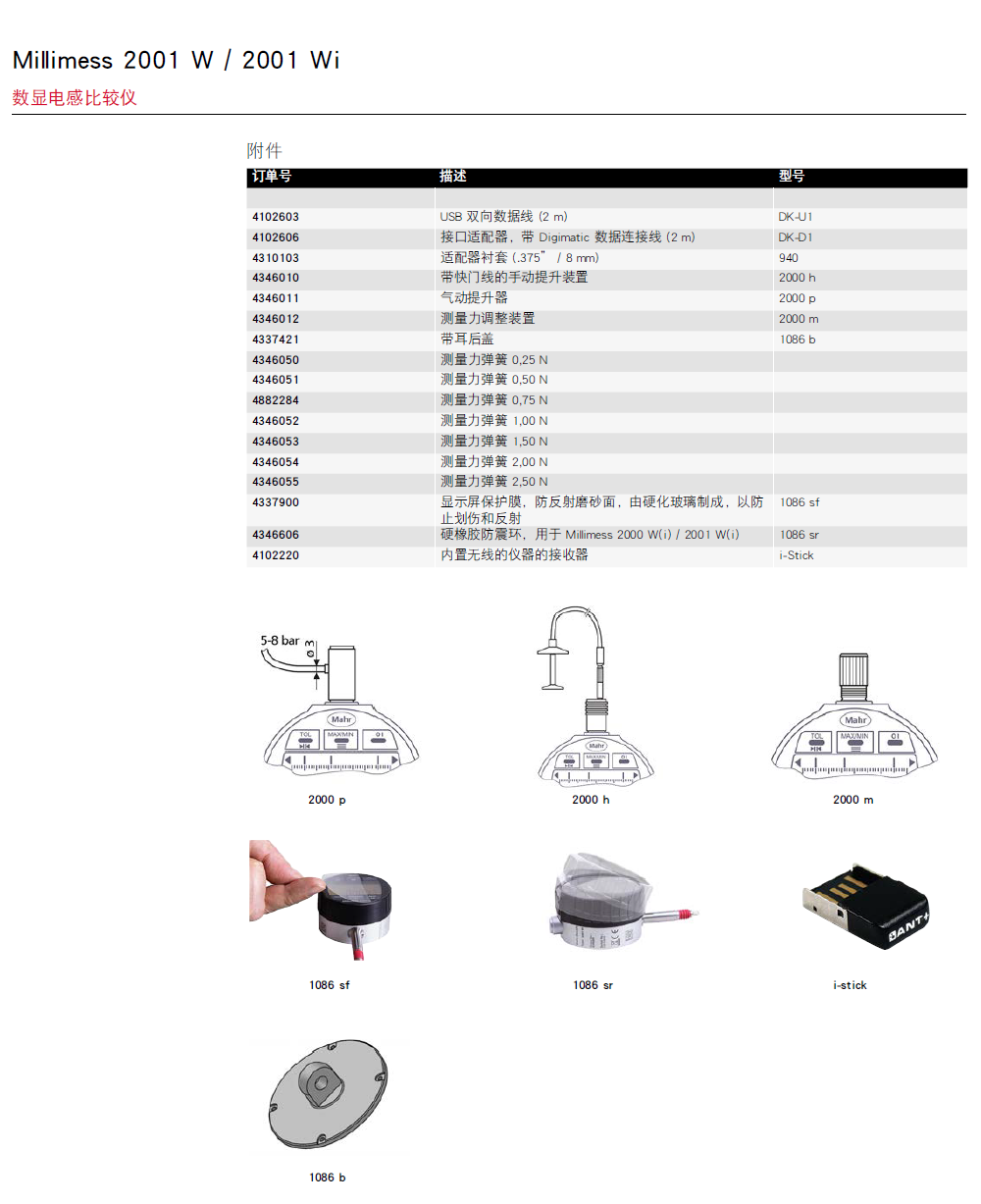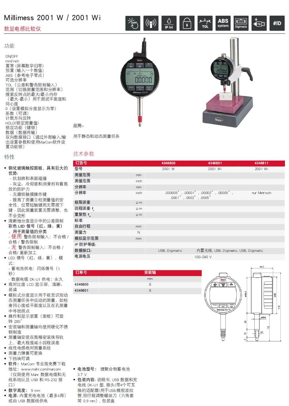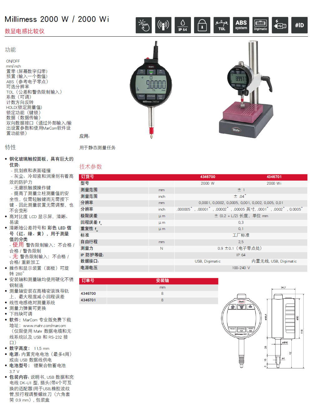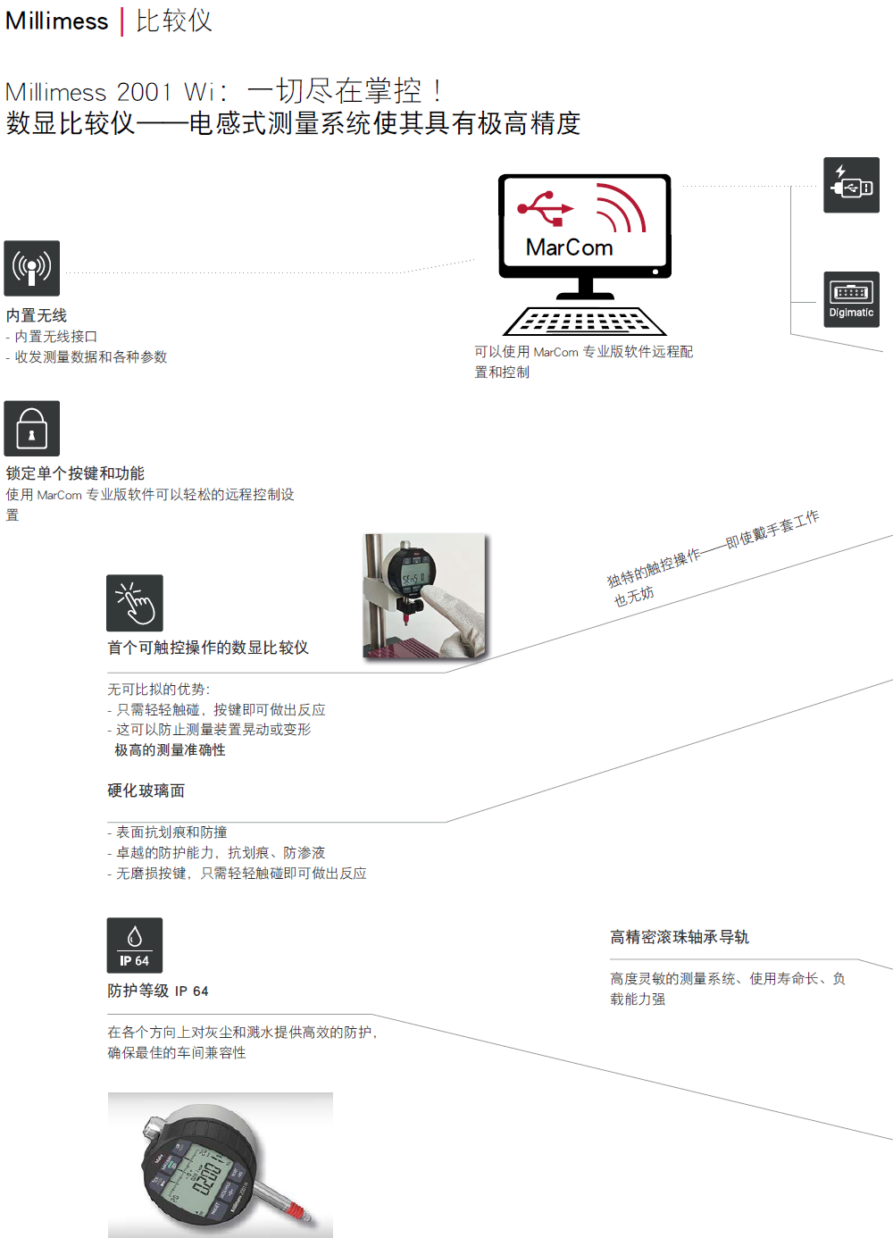 德国MAHR马尔内置无线Millimess 2000 Wi数显电感比较仪高精度蓝牙数字比较仪Millimess 2001 Wi电感测量仪