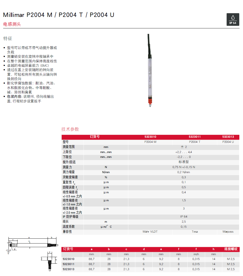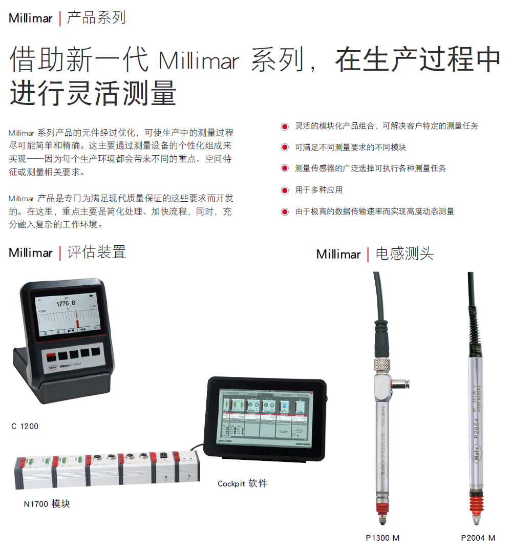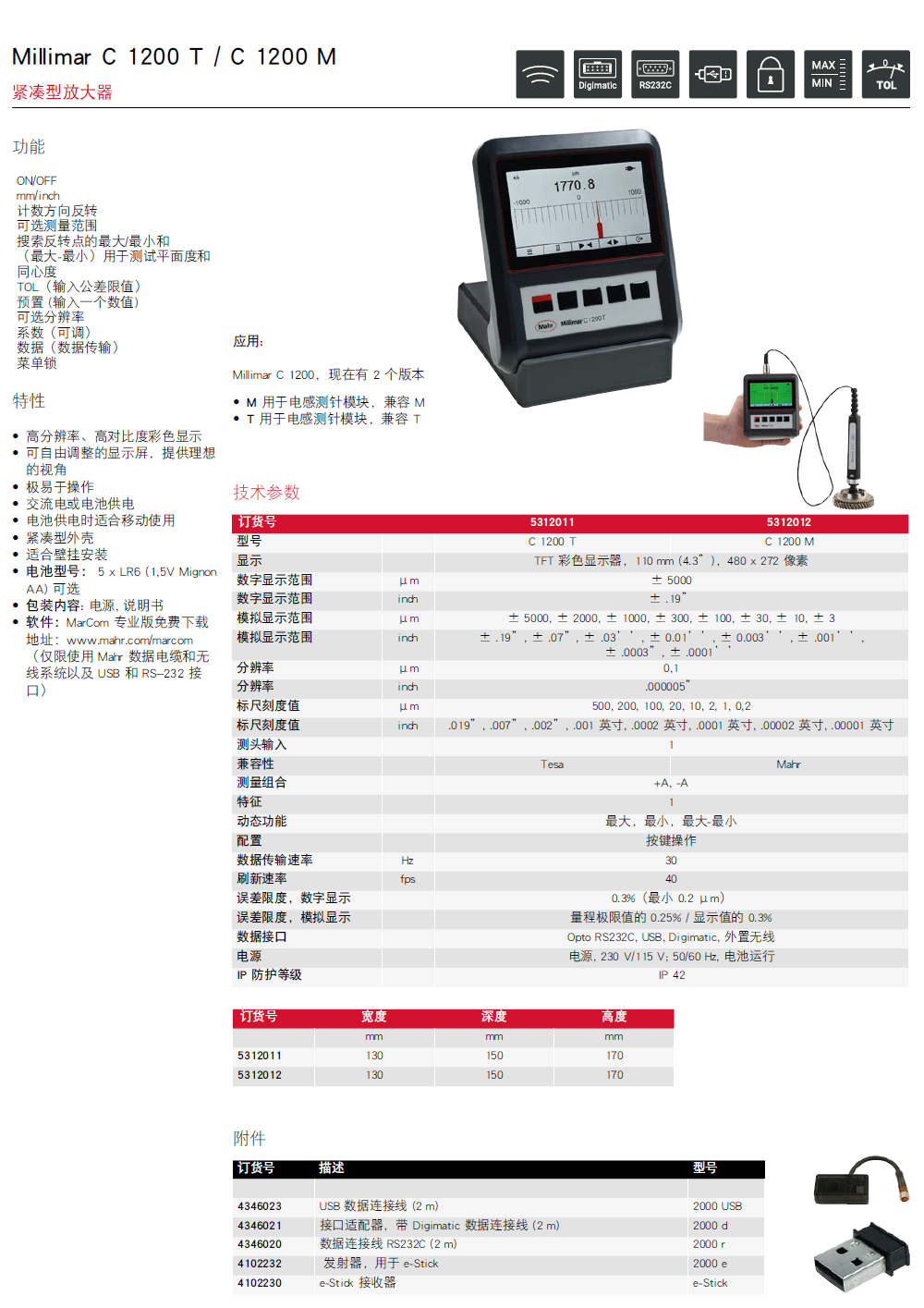 德国MHAR马尔无线电感量仪Millimar C 1200M高精度电感测头Millimar P2004M马尔笔式LVDT兼容TESA电感量仪Marposs电感量仪