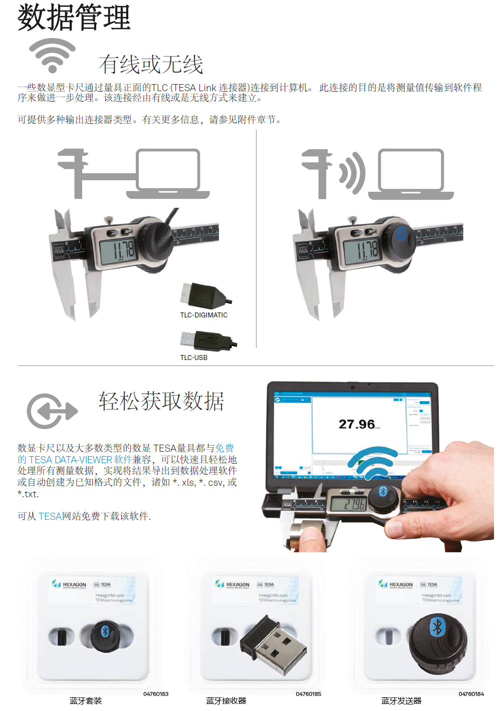瑞士TESA无线数显卡尺系列TLC-BLE无线发送器与计算无线连接