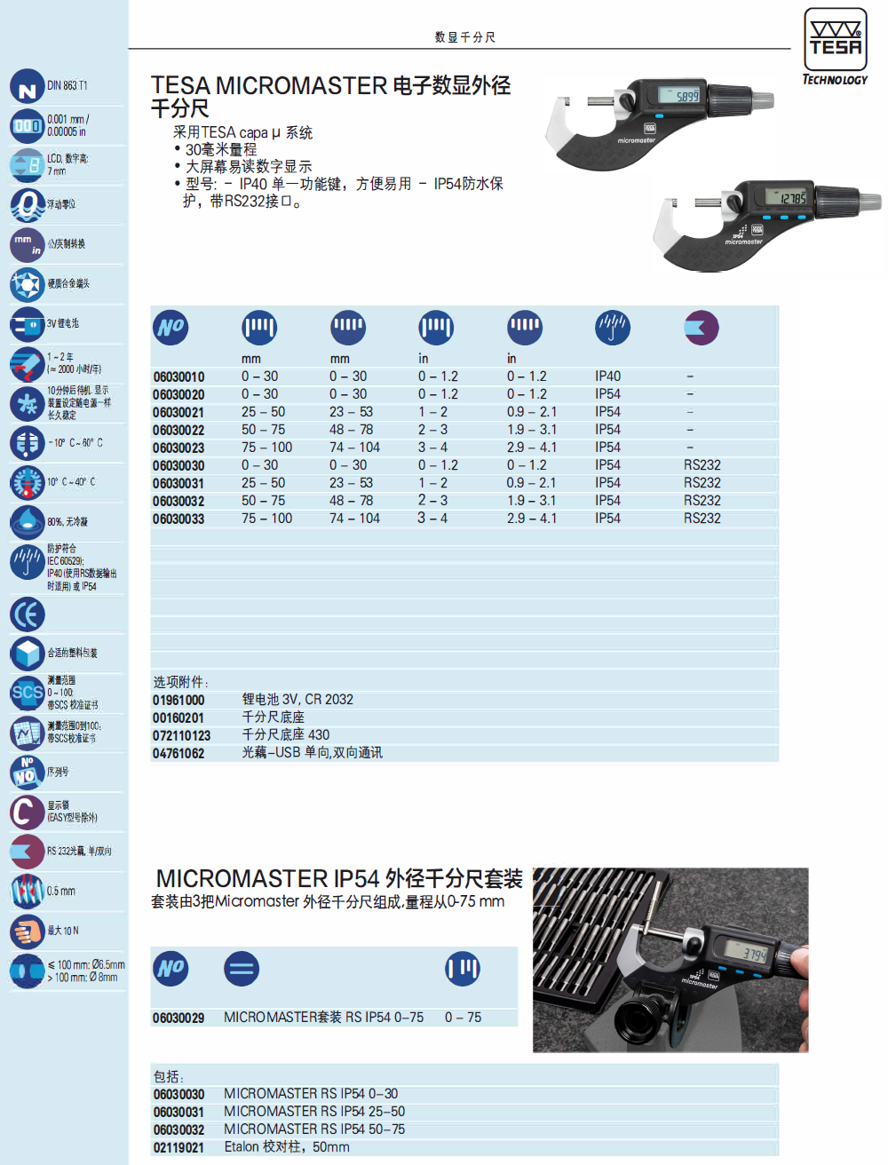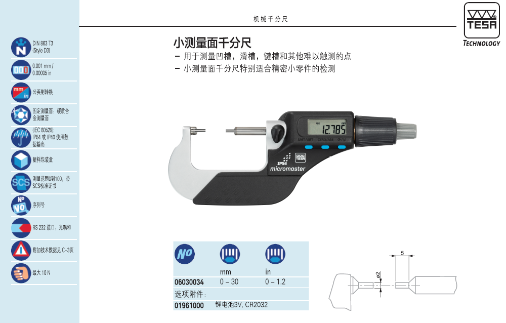 瑞士TESA无线数显外径千分尺TESA MICROMASTER无线蓝牙电子外径千分尺0-30mm电子数位分厘卡