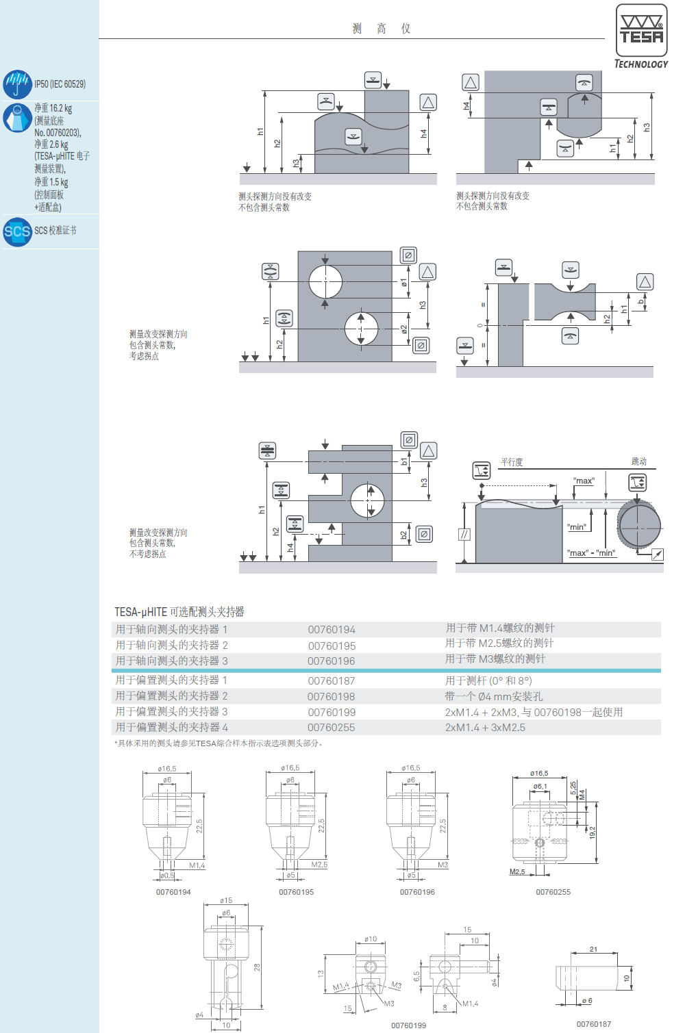 - 灵活,因为仪器也可用作1D 测头以及高度尺
