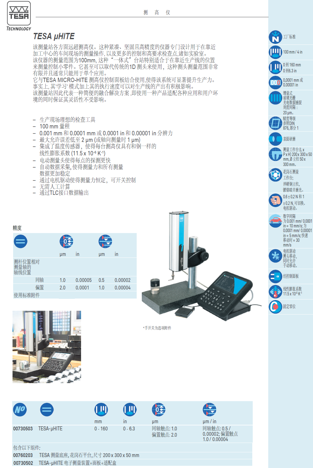 瑞士TESA无线蓝牙TESA µ-HITE高度测量仪0.0001mm高精度无线高度计电池隔膜厚度测量仪无线蓝牙厚度高度测量仪