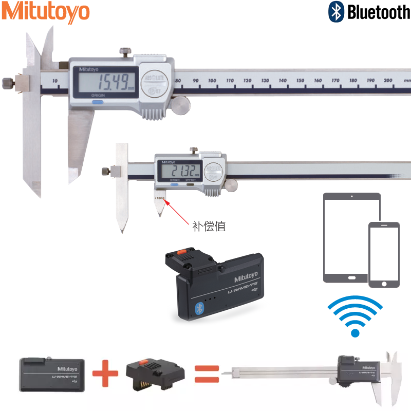mitutoyo日本三丰U-WAVE fit Bluetooth无线蓝牙偏置数显卡尺573-601-20偏置中心线无线卡尺孔中心距卡尺573-605-20