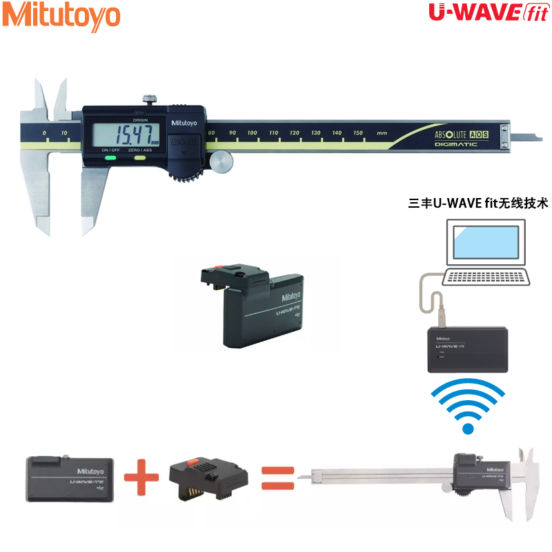 日本mitutoyo三丰无线数显卡尺U-WAVE fit多量具无线连接无线内外沟槽数显卡尺无线尖爪薄片数显卡尺无线电子数显卡尺