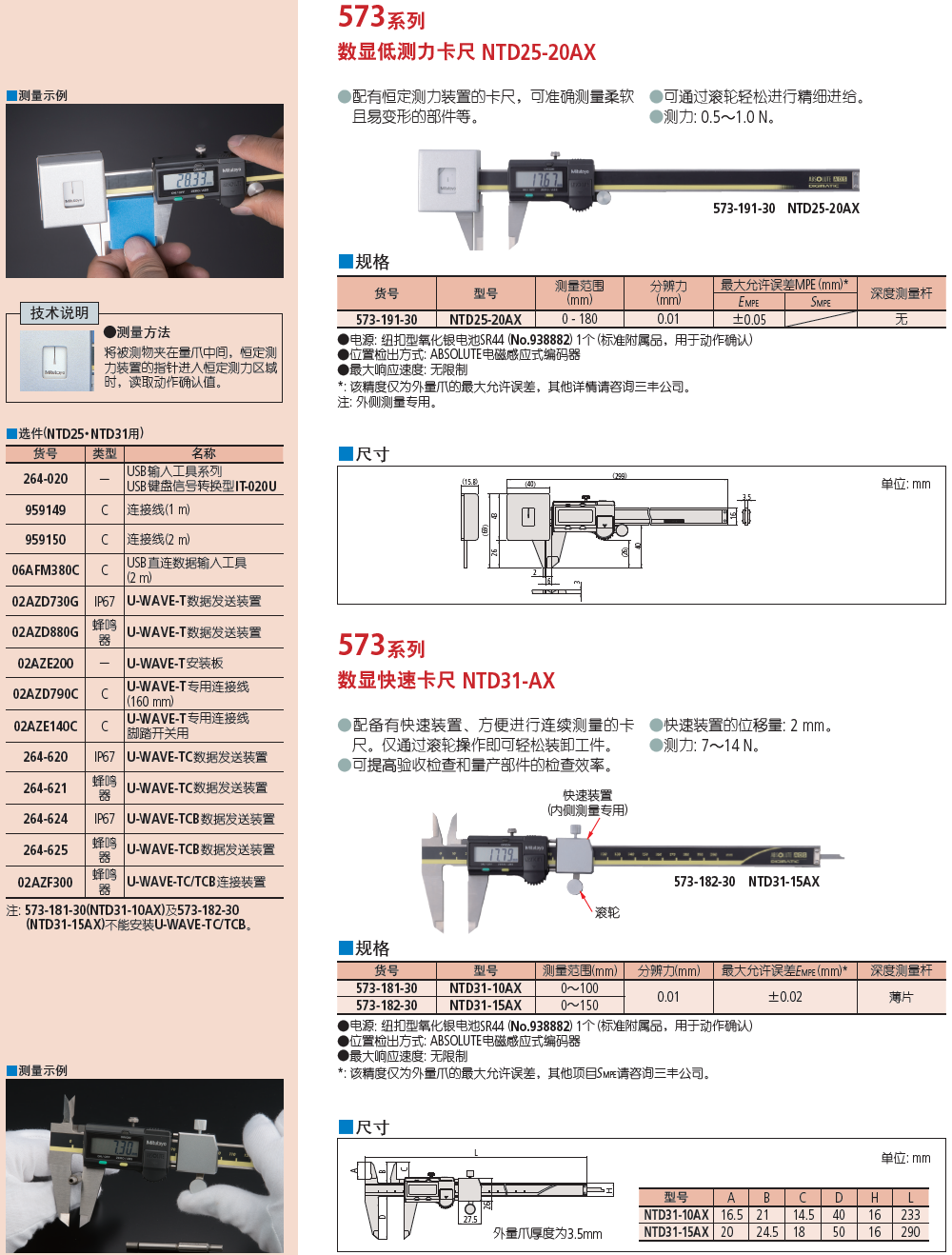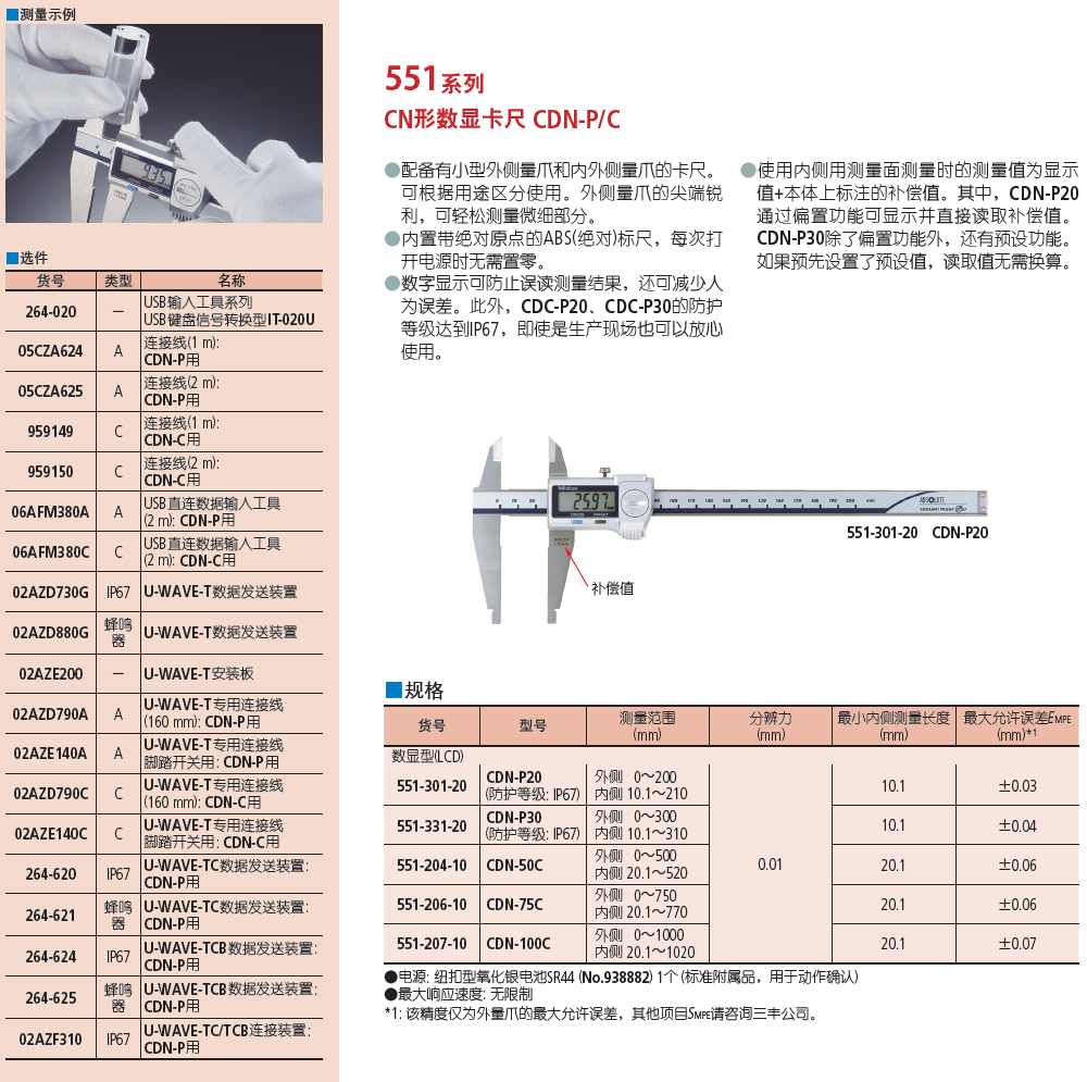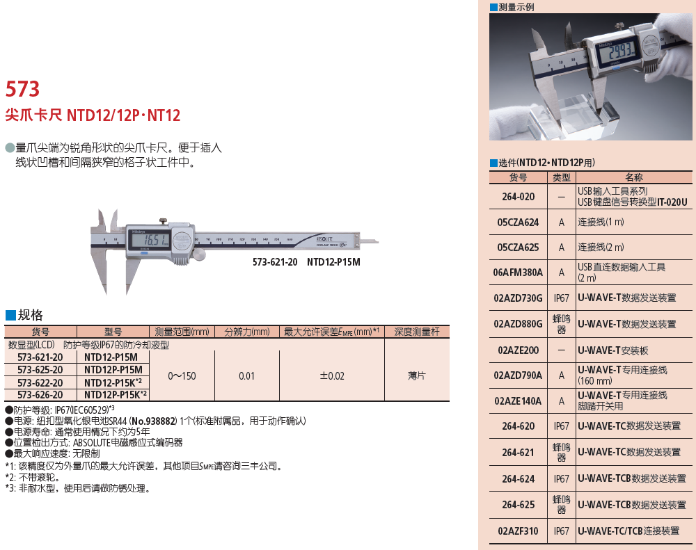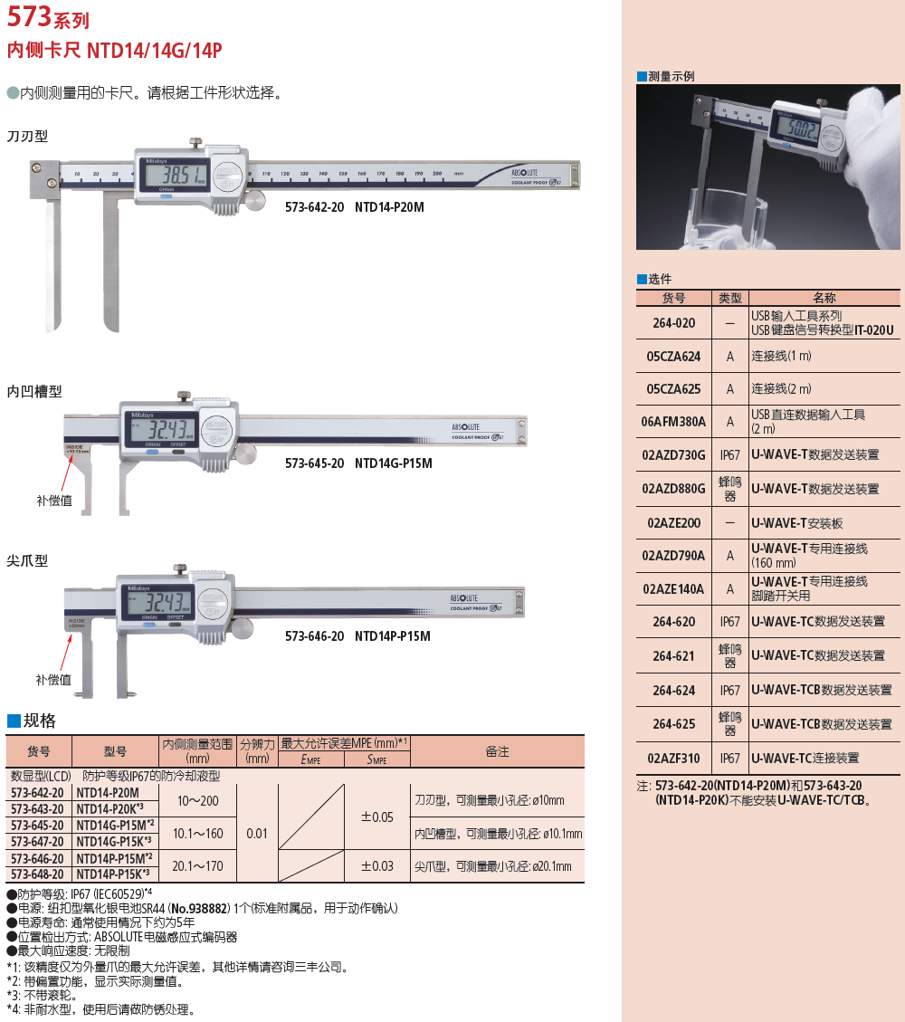 卡尺发射器:264-624,264-625,U-WAVE-TCB,U-WAVE-TCB,