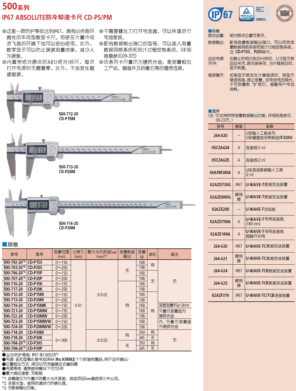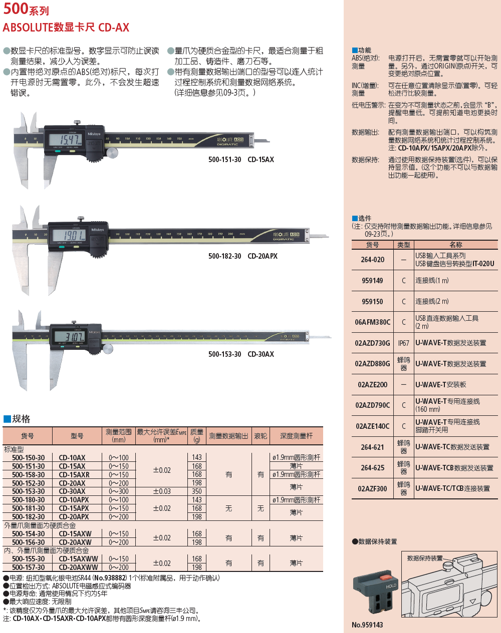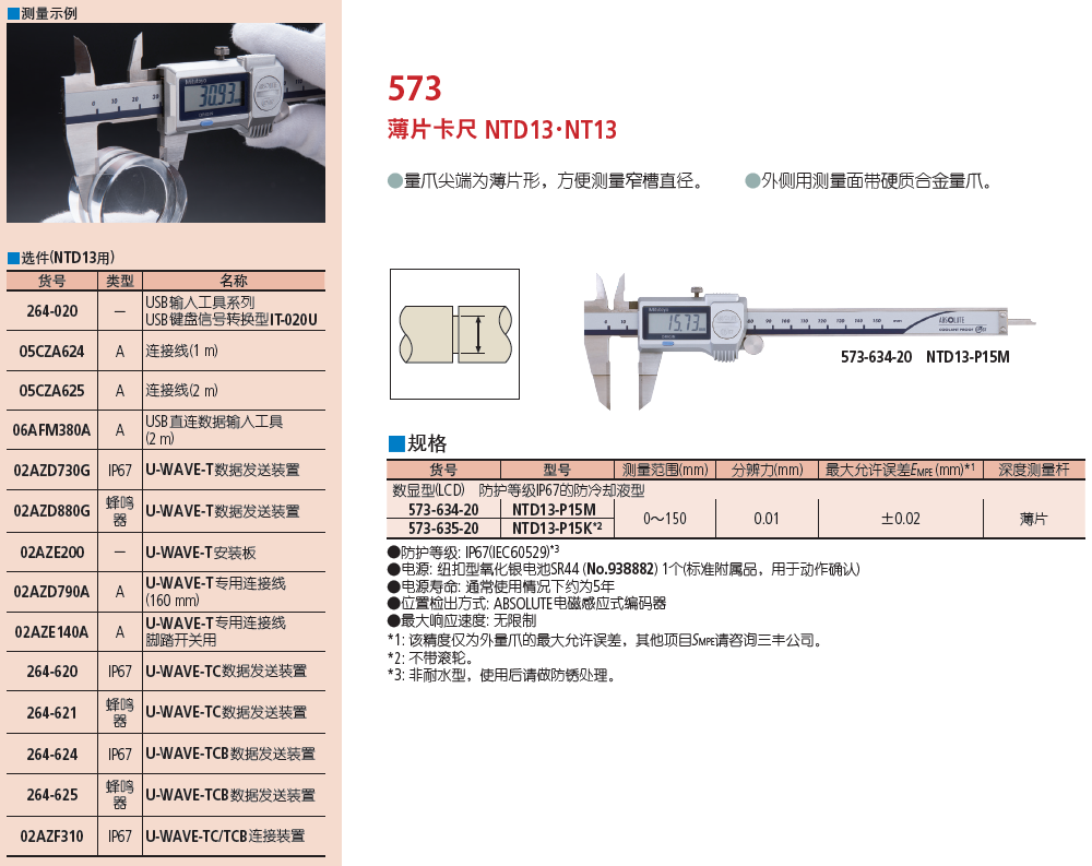 卡尺发射器:264-624,264-625,U-WAVE-TCB,U-WAVE-TCB,