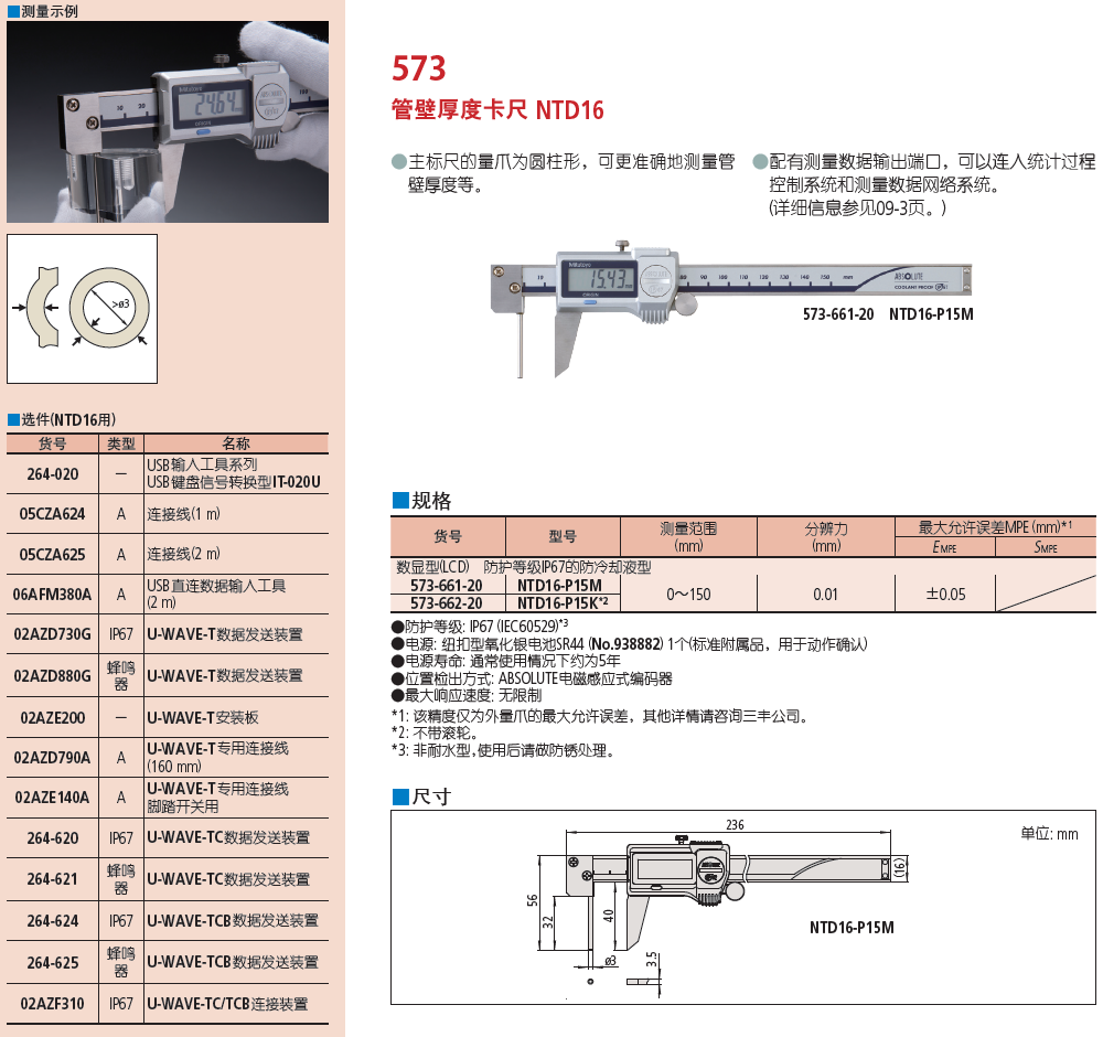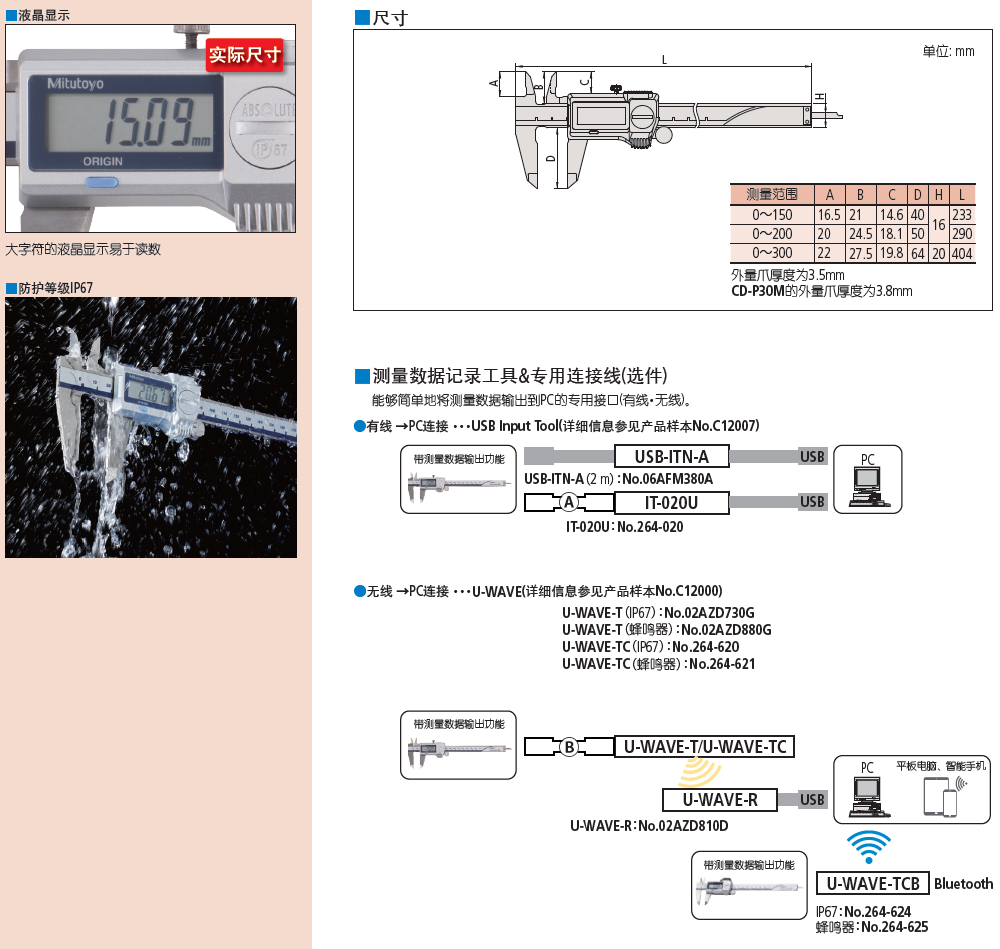 千分尺发射器:264-626,264-627,U-WAVE-TMB,U-WAVE-TMB,