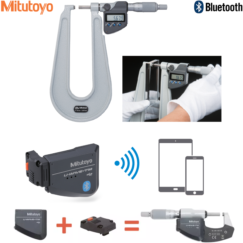 mitutoyo日本三丰无线蓝牙板厚千分尺389-251-30片材板材厚度千分尺U-WAVE fit Bluetooth卡尺型外径千分尺OMP-25MX