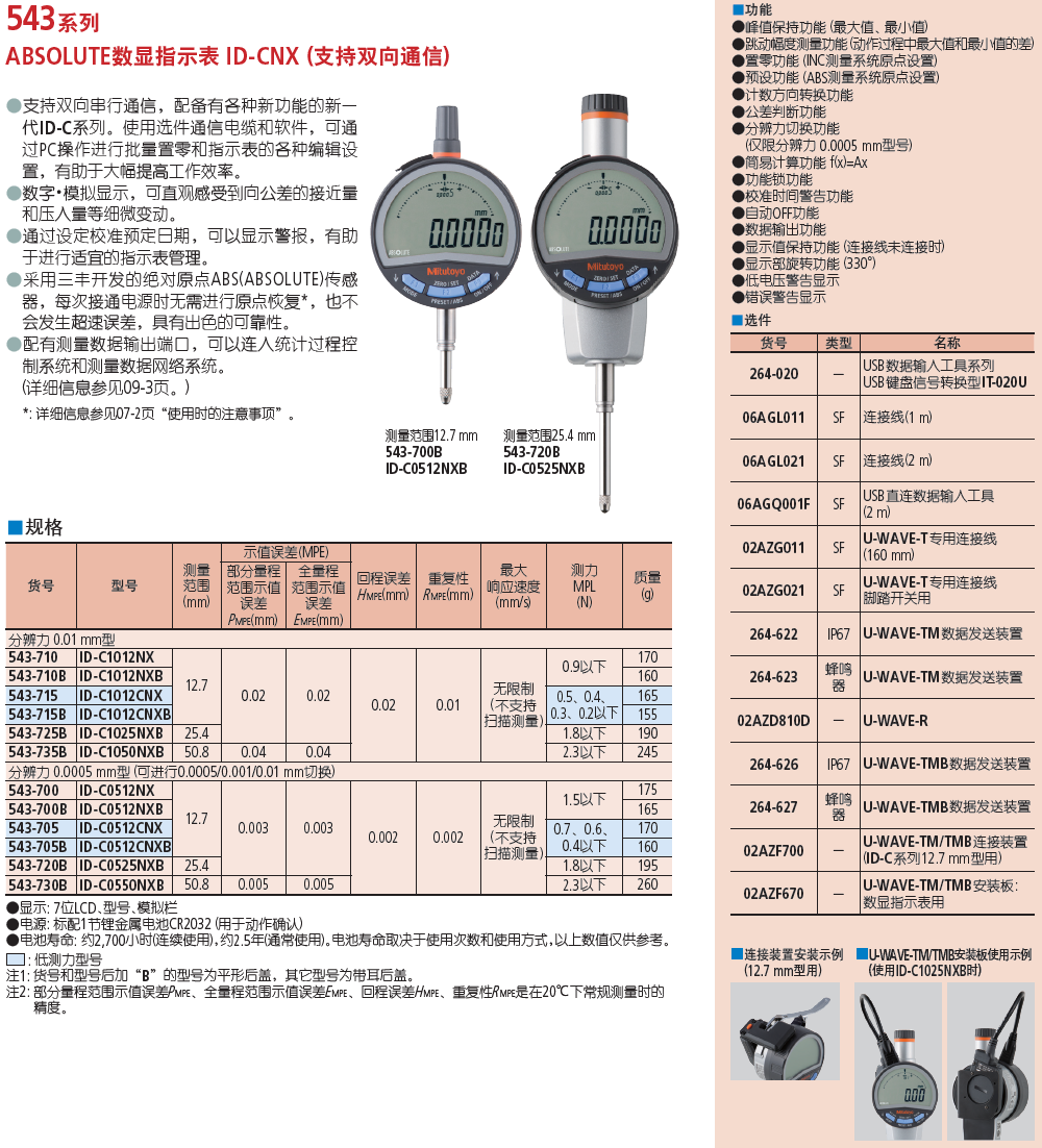 千分尺发射器:264-626,264-627,U-WAVE-TMB,U-WAVE-TMB,