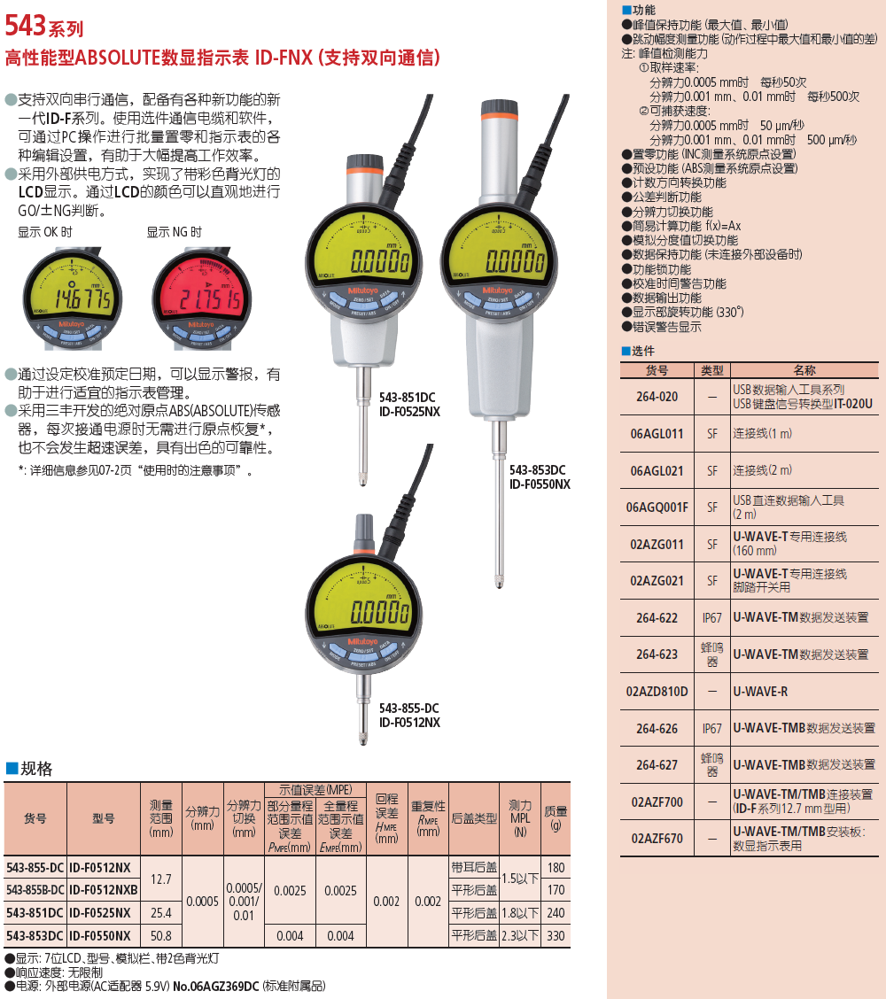 高性能型ABSOLUTE数显指示表 ID-FNX (支持双向通信)