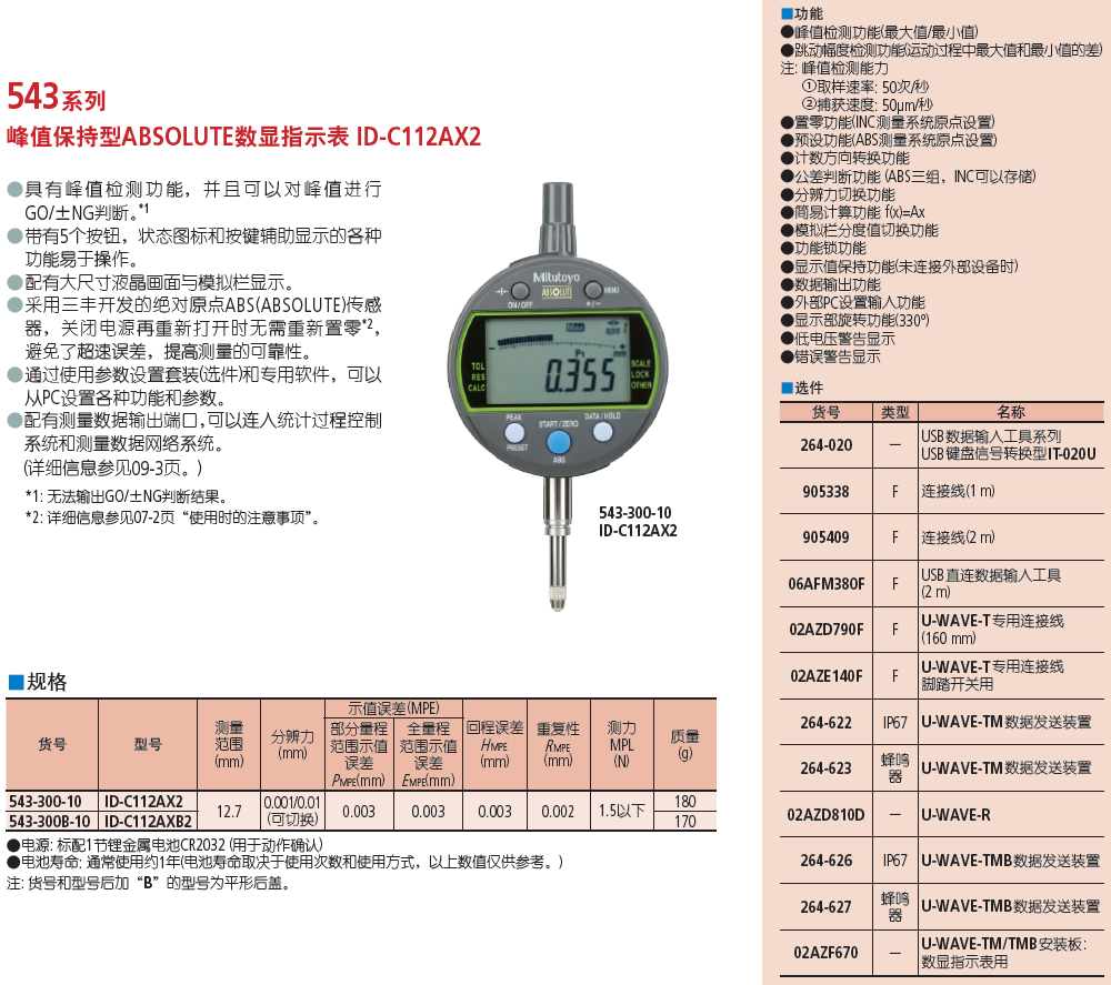 千分尺发射器:U-WAVE-TM,U-WAVE-TM,264-622,264-623,