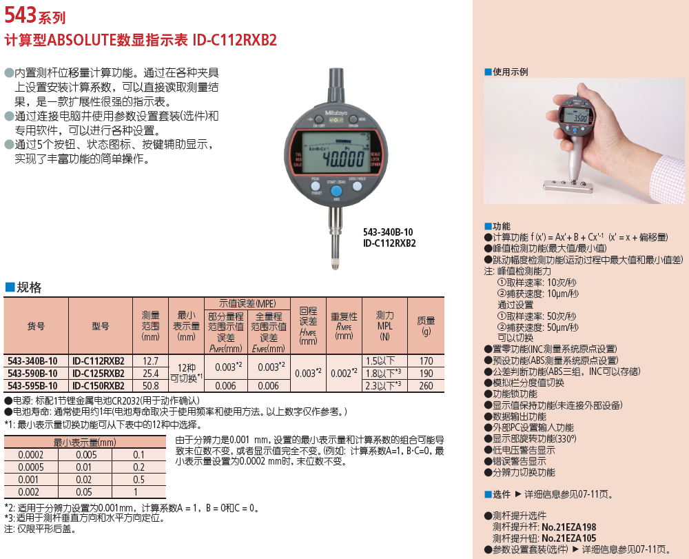 计算型ABSOLUTE数显指示表 ID-C112RXB2