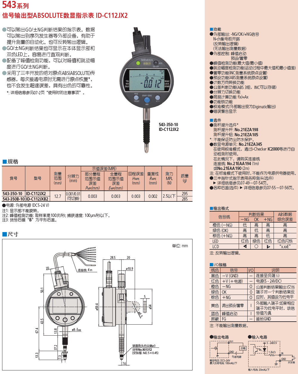 信号输出型ABSOLUTE数显指示表 ID-C112JX2