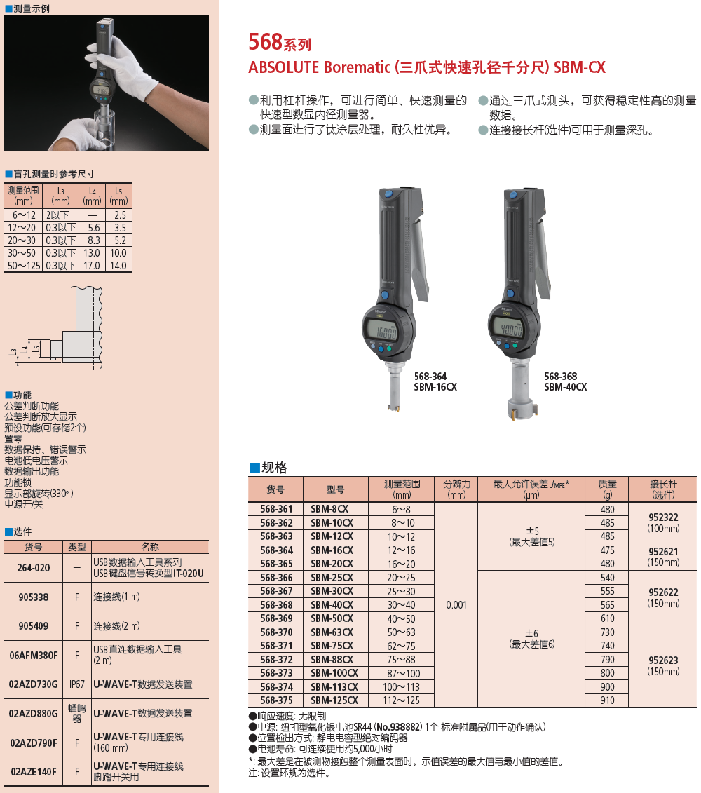 568系列ABSOLUTE Borematic (三爪式快速孔径千分尺) SBM-CX