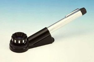 PEAK光源刻度放大镜15X(型号2016) 为解决光照不足环境下的观测问题,该照明装置由笔型手电筒握柄和主体支架构成,显著提升了观察便捷性。